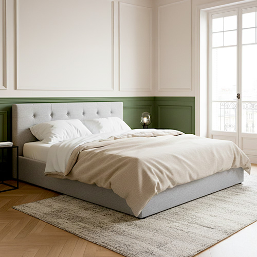 Le lit coffre Ava est vendu avec le sommier relevable à lattes et une tête de lit matelassée pour un maximum de confort.