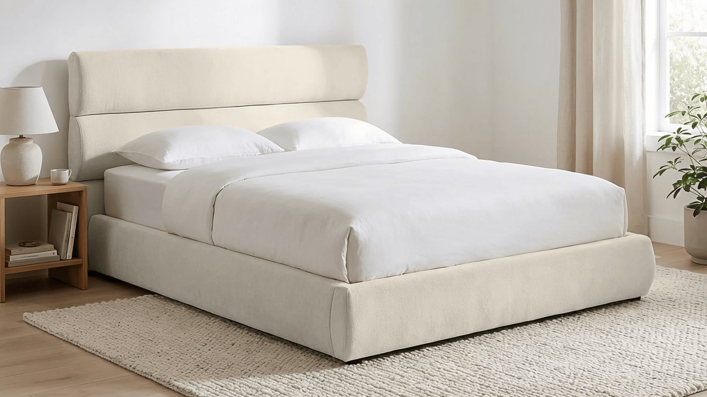 En stock• Lit coffre en tissu bouclé beige avec tête de lit capitonnée • Dimension de couchage : 180 x 200 cm • Couleur : Beige • Revêtement : Tissu bouclé 560 g/m² — certifié Oeko-Tex — tissu doux et facile d’entretien • Sommier à lattes inclus (36 lattes) avec vérins pour un accès facile au coffre de rangement • Coffre de rangement intégré, idéal pour...