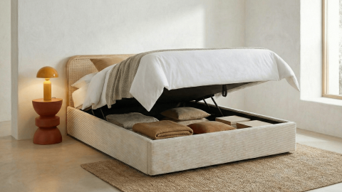 Lit coffre en velours côtelé - Elsa