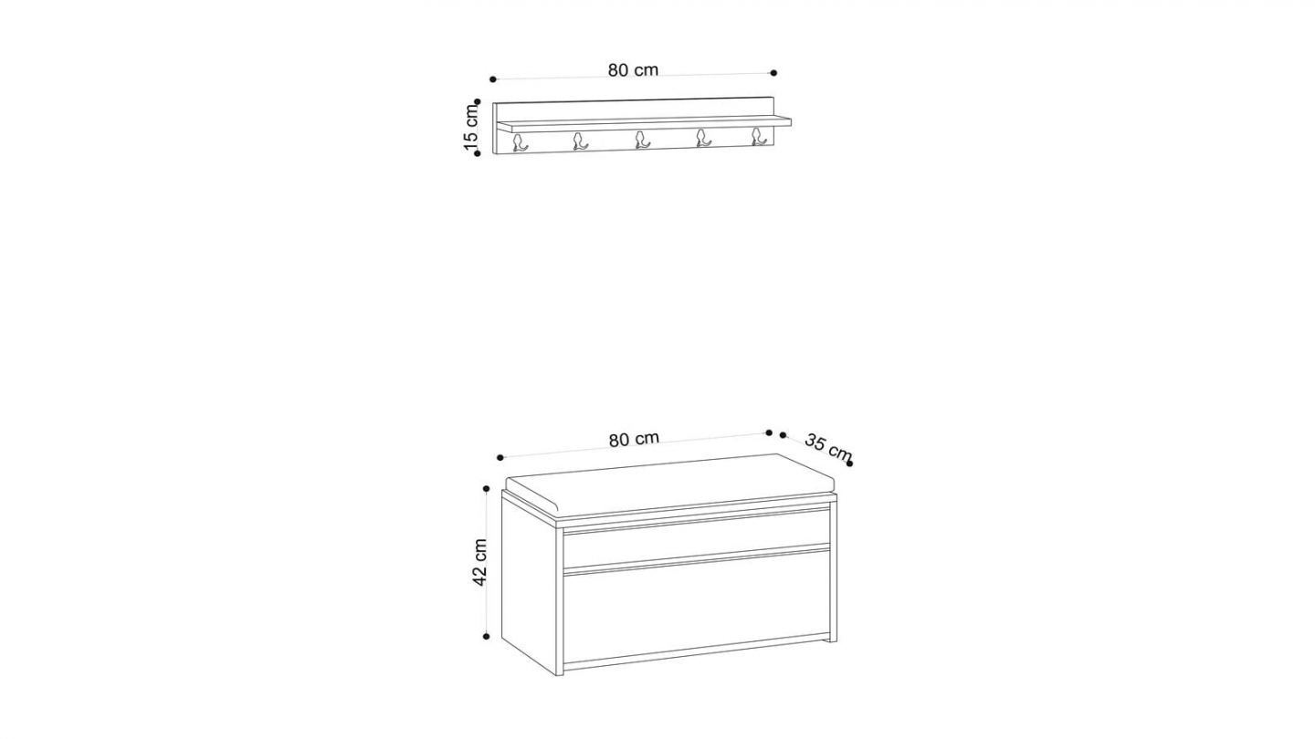 • Dimensions totales : Meuble : 80 x 35 x 42 cm - Patère : 80 x 17 cm