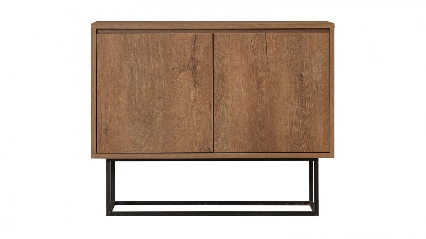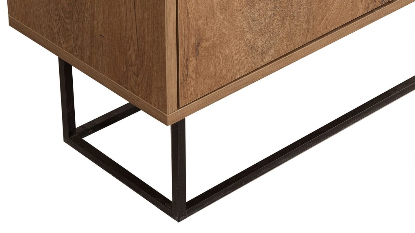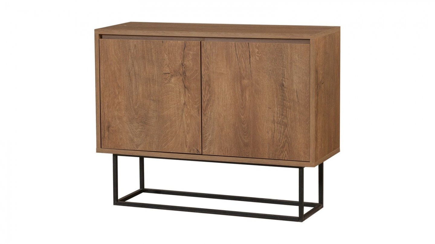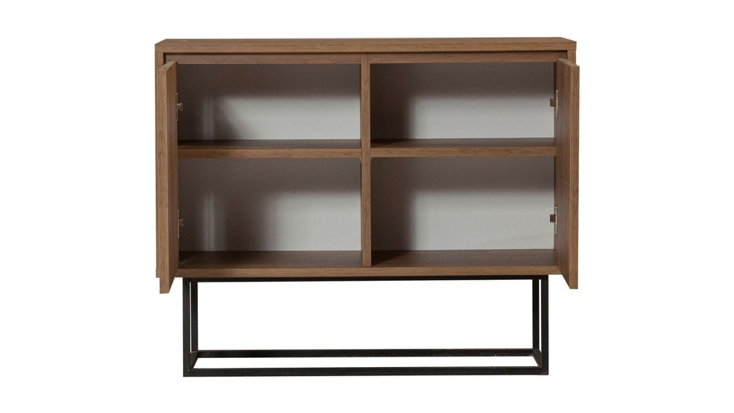 • Buffet contemporain alliant structure bois et piètement métallique, offrant un grand espace de rangement derrière ses portes discrètes.