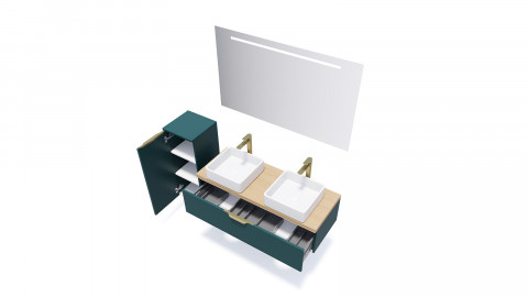 En stock• Ensemble Meuble, 2 vasques à poser, miroir et colonne• Couleur du meuble : chêne clair• Finition du meuble : texturé• Poignées noir• Plan de toilette stratifié couleur• Vasque carrée en céramique - Blanc brillant• Nombre de tiroirs : 2 - Les tiroirs sont équipés du système softclose• Demi-colonne 1 porte - ouverture à gauche• Dimensions du meuble de...