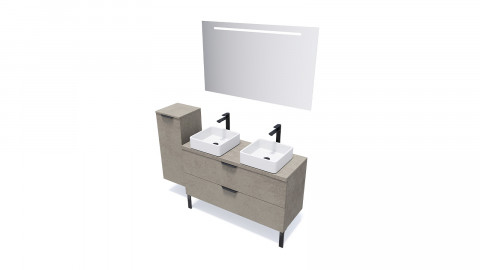 En stock• Ensemble meuble de salle de bain et 2 vasques à poser• Corps de meuble en mélaminé, épaisseur 16 mm, traverses aluminium, assemblage en usine par tourillons collés• Couleur du meuble : terracotta• Finition du meuble : Mat• Plan de toilette stratifié couleur terrazzo• Vasque carré en céramique - blanc brillant• Nombre de tiroirs : 2 - Les tiroirs sont...