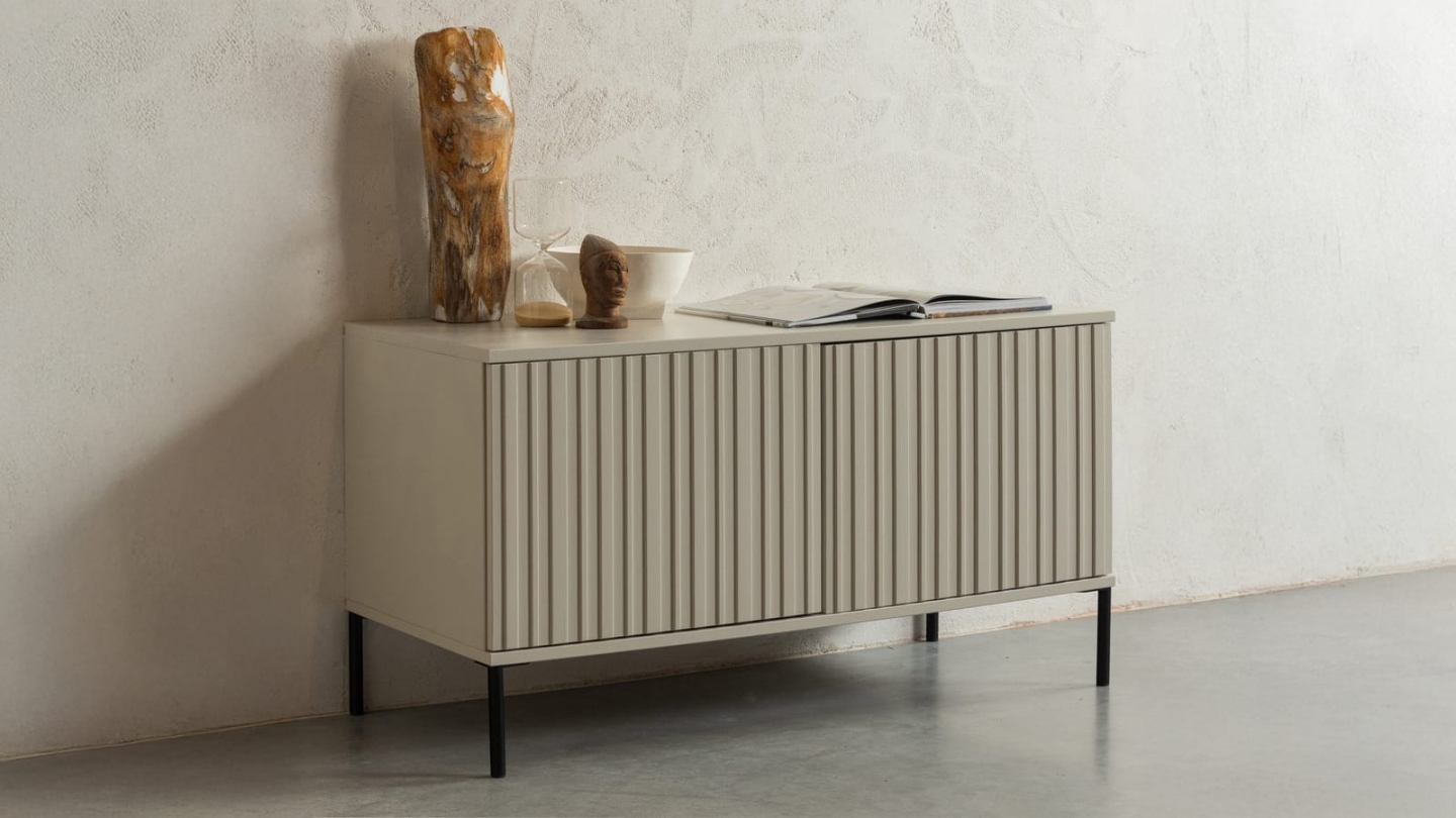 • Meuble TV au design moderne avec portes en relief décoratif