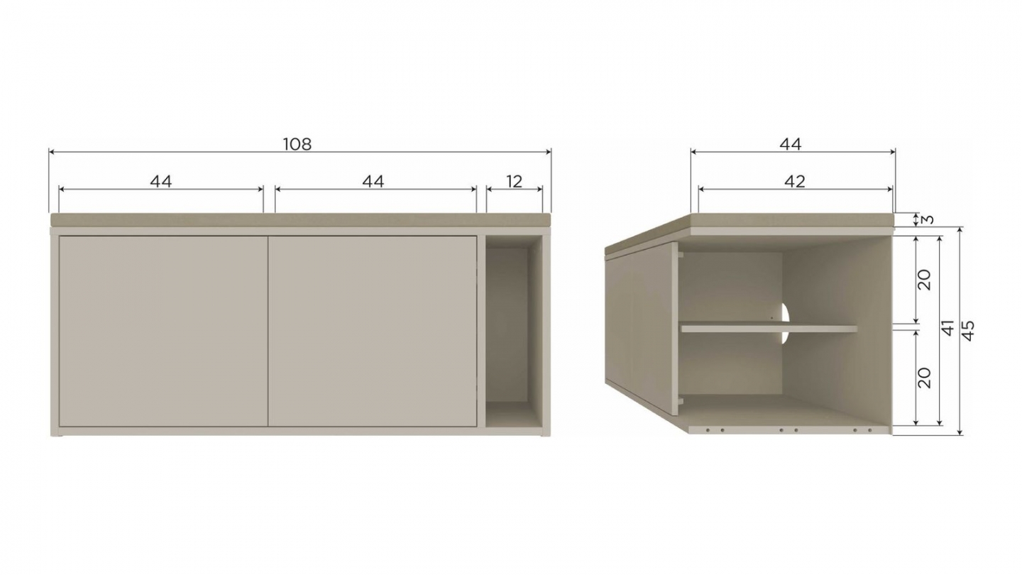 • Rangement pratique : 2 portes, compartiment ouvert et passage pour câbles