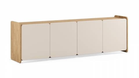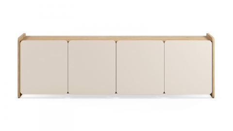 Buffet - Sami• Matière : Mélamine• Couleur : Beige et décor chêne• Piètement en mélamine chêne• Rangements : 4 portes battantes, 2 tablettes• Dimensions totales : 180 x 40 x 80 cm• Poids net : 56,5 kg