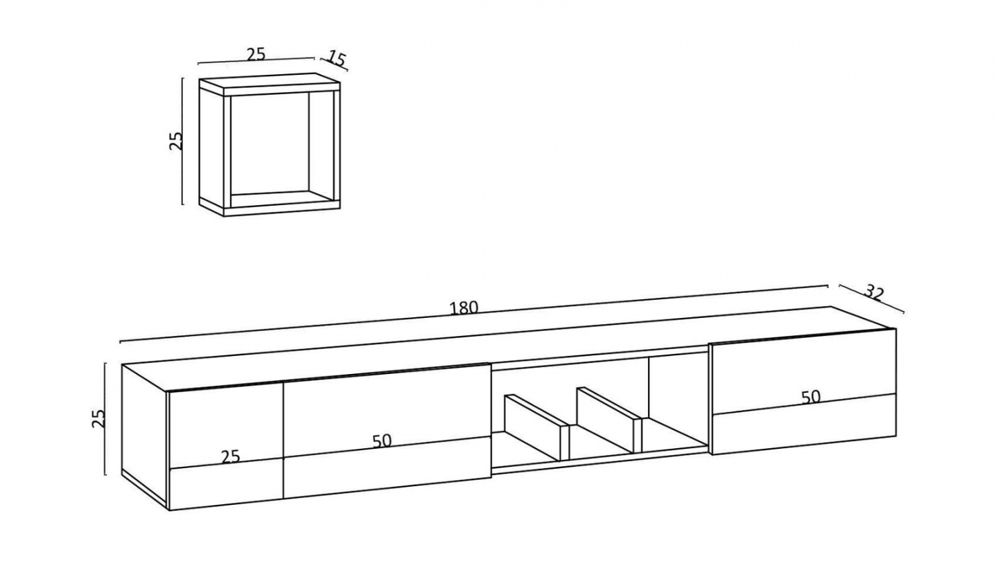 • Dimensions du meuble TV : 180 x 32 x 25 cm