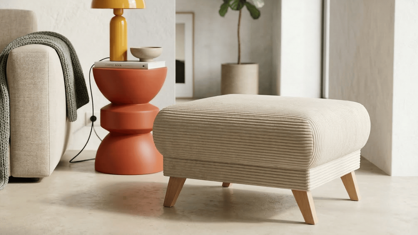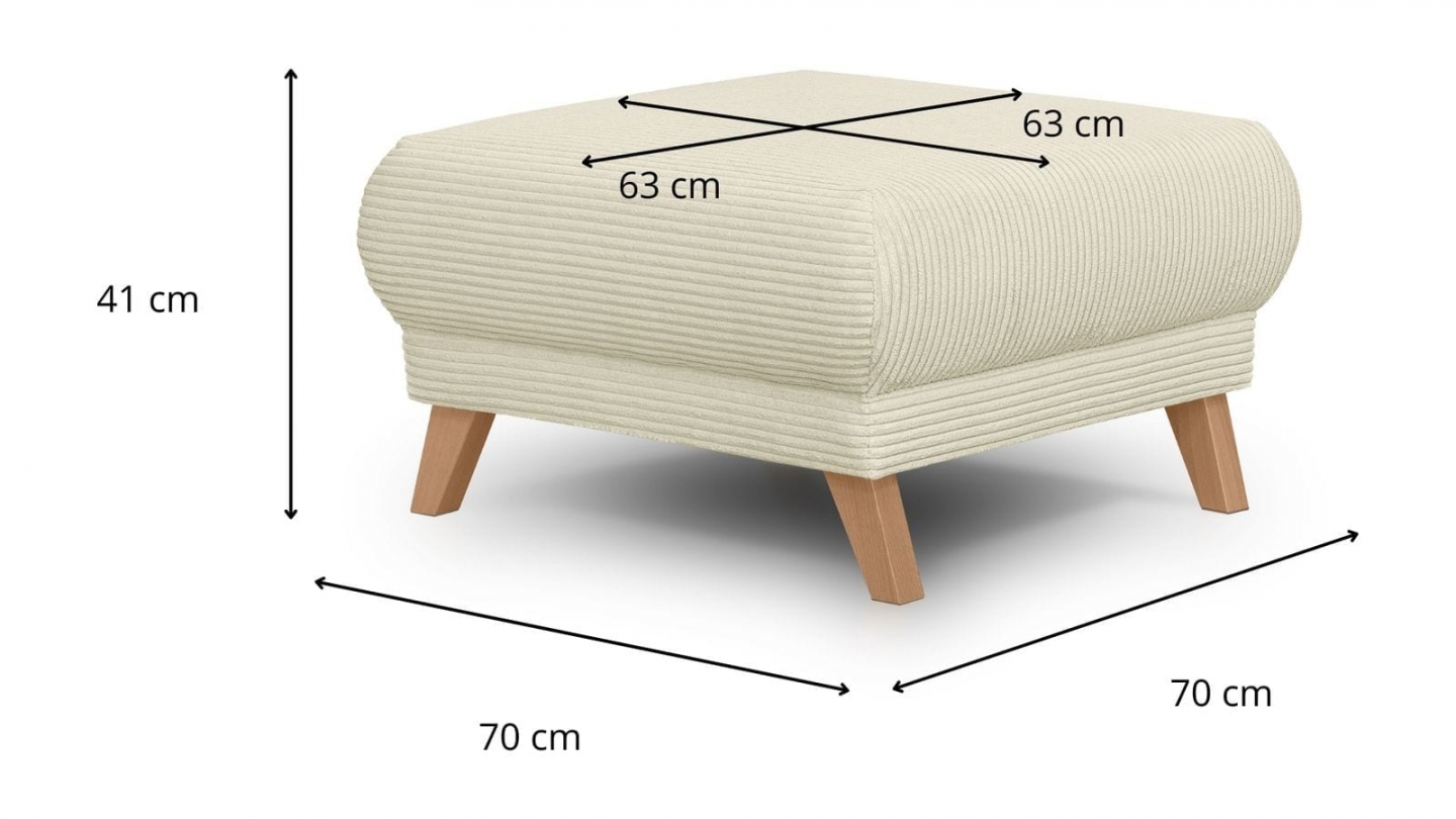 Pouf, repose-pieds • Compatible avec la collection de canapé Livia• Revêtement : Velours côtelé certifié Oekotex -380 gr/m² - Protection contre l'incendie, cigarette test, Résistance à l'abrasion, Solidité de la couleur à la lumière• Couleur : Rouille• Garniture : mousse de polyuréthane 30kg/m3• Structure en pin massif et panneaux de particules -...