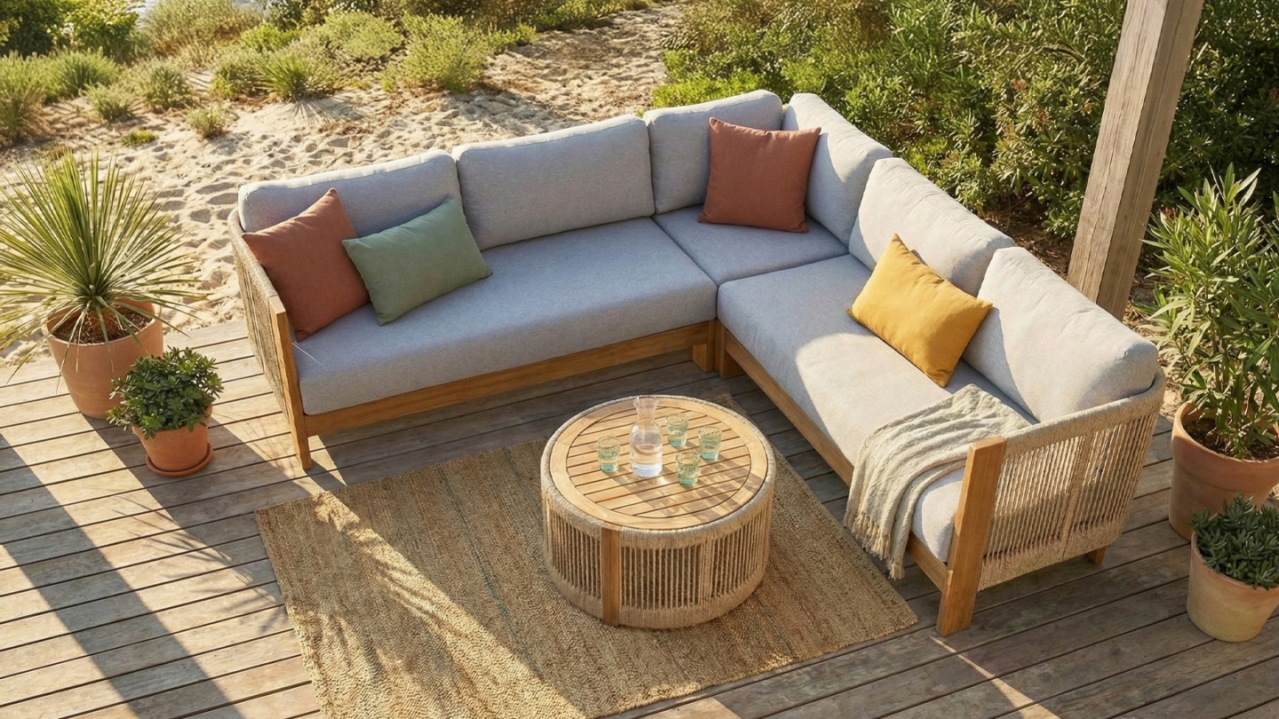 Le bois d’acacia est particulièrement adapté aux salons de jardin grâce à sa robustesse naturelle et sa résistance aux intempéries.