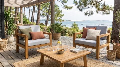 Le bois d’acacia est particulièrement adapté aux salons de jardin grâce à sa robustesse naturelle et sa résistance aux intempéries.