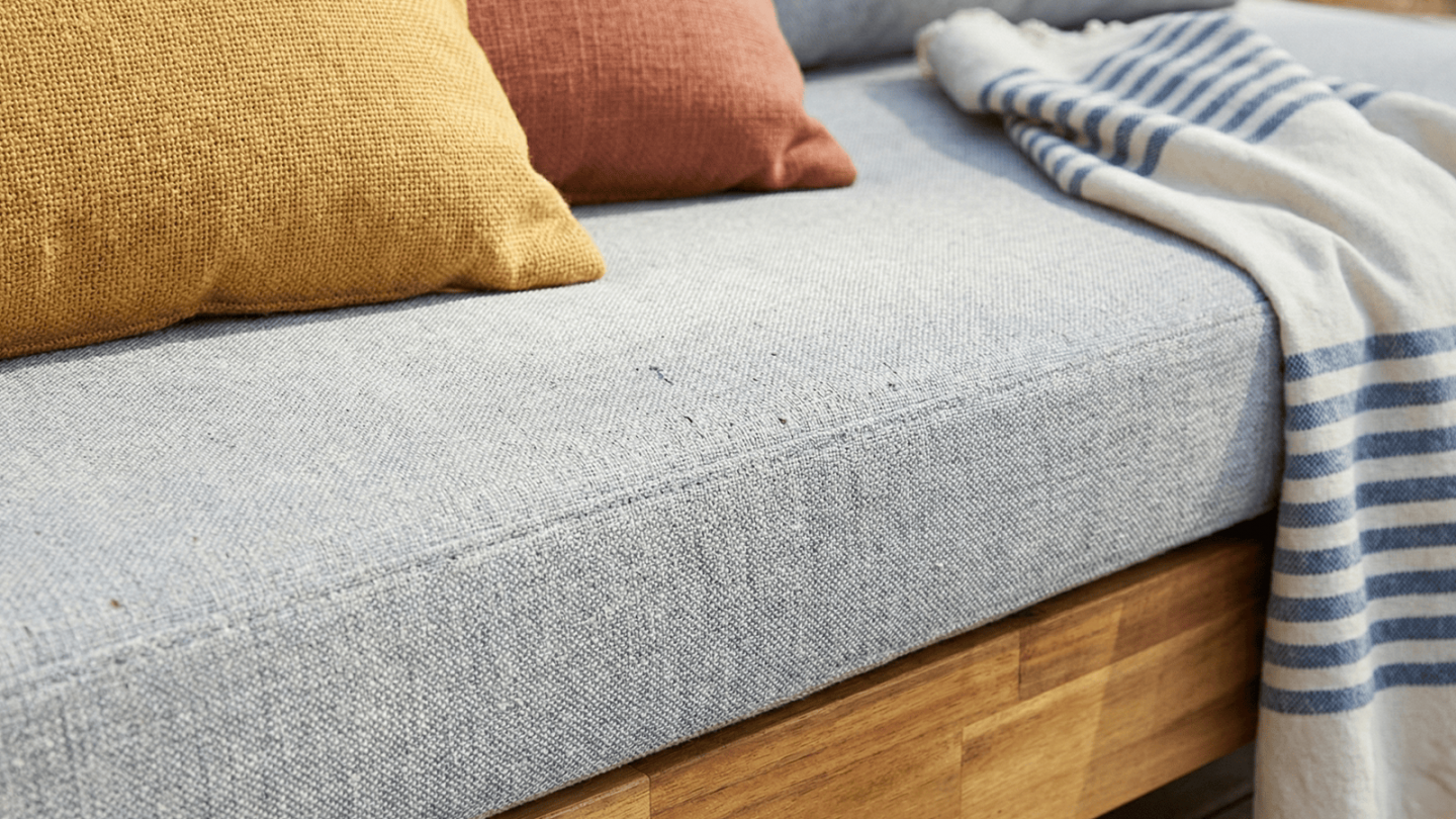 Les coussins gris chiné, épais et moelleux, invitent à la détente et sont entièrement déhoussables pour un entretien facile.