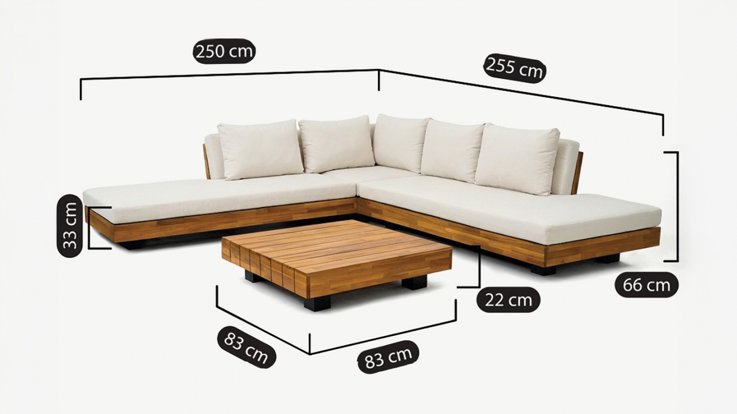 Salon de jardin d'angle 5 places - Capri • Capacité : 5 places • Composition du pack : 1 table basse carrée, 1 banquette 3 places, 1 banquette 2 places Matériaux Structure en bois d'acacia FSC avec finition huilée, teinte teck Le bois d’acacia est idéal pour un salon de jardin : naturellement résistant et durable • Protection : Finition huilée empêchant...