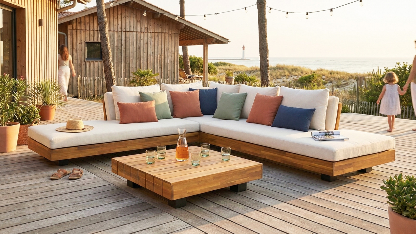 Le bois d’acacia est idéal pour un salon de jardin : naturellement résistant et durable