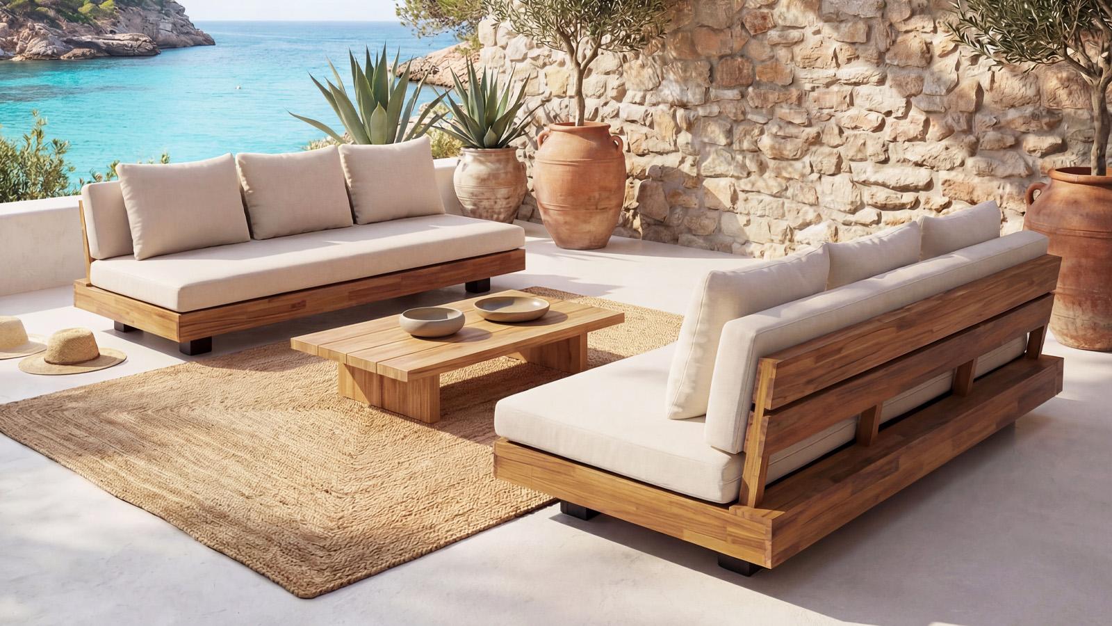 Ensemble de canapés de jardin 6 places en bois FSC - Coussins beige- Capri