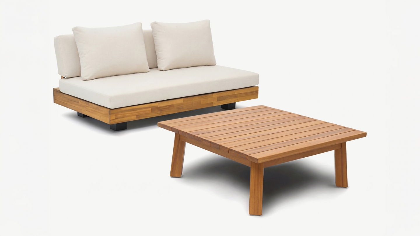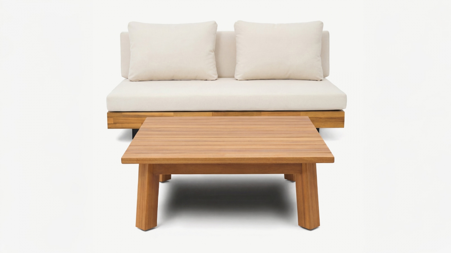 Salon de jardin 2 places en bois FSC - Coussins beige - Capri
