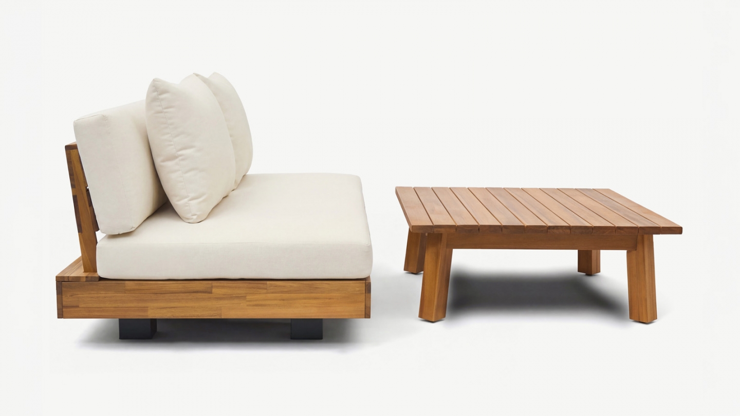 Le bois d’acacia est particulièrement adapté aux salons de jardin grâce à sa robustesse naturelle et sa résistance aux intempéries.