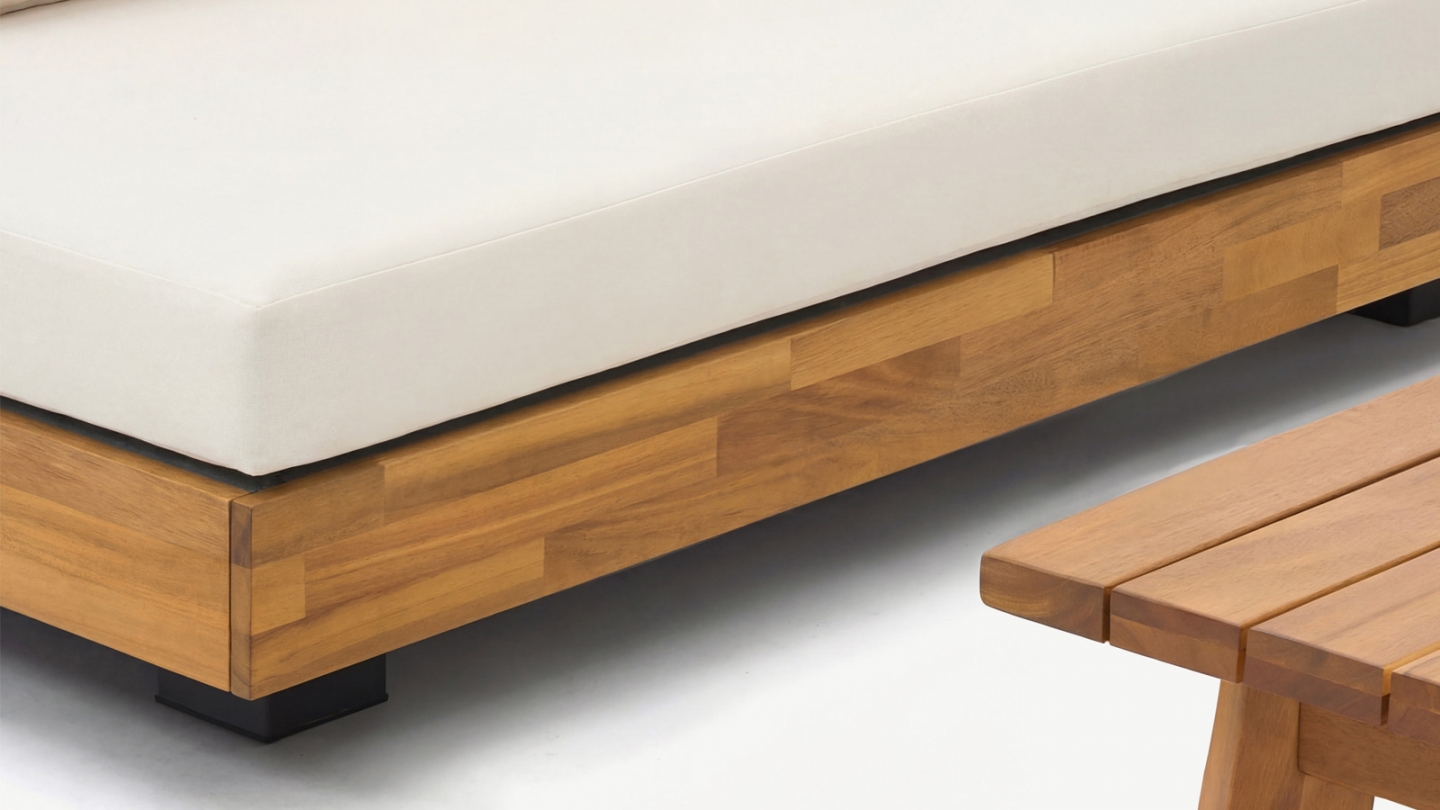• Matériau : Structure en bois d'acacia FSC avec finition huilée, couleur teck