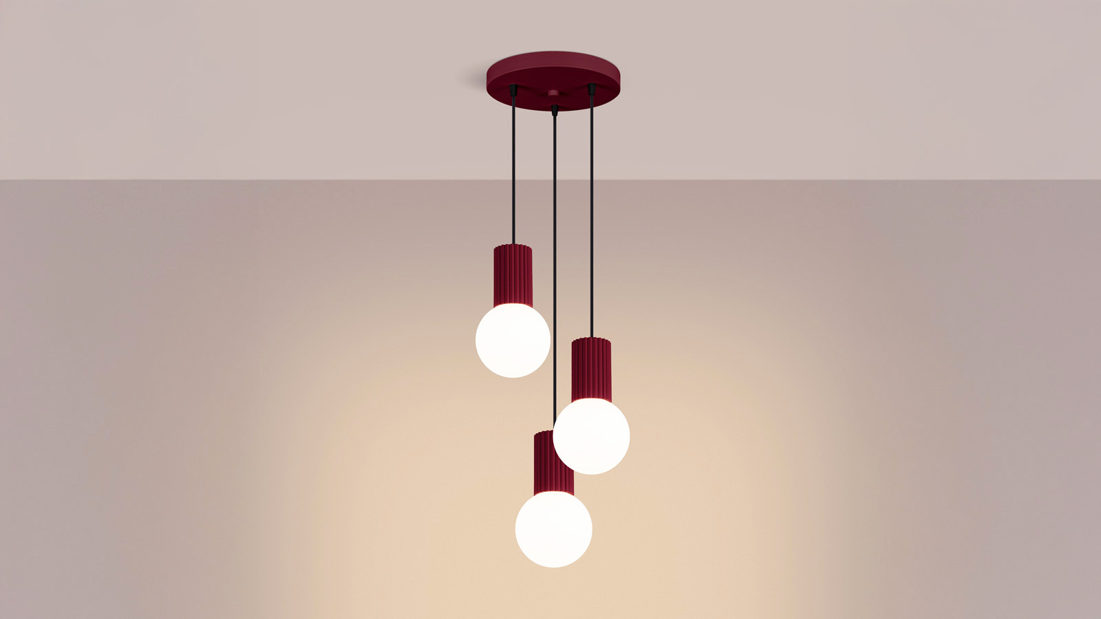 Suspension en aluminium cannelé 3 ampoules bordeaux - Halo