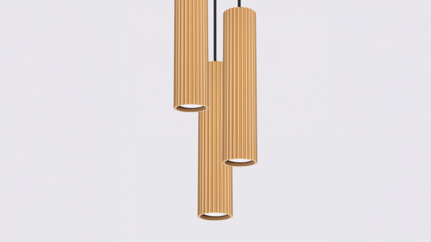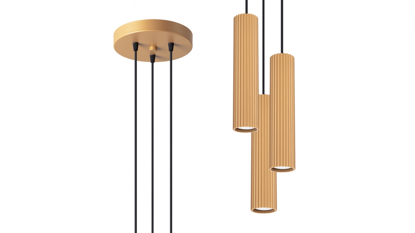 Suspension circulaire en aluminium cannelé 3 ampoules or - Karbon