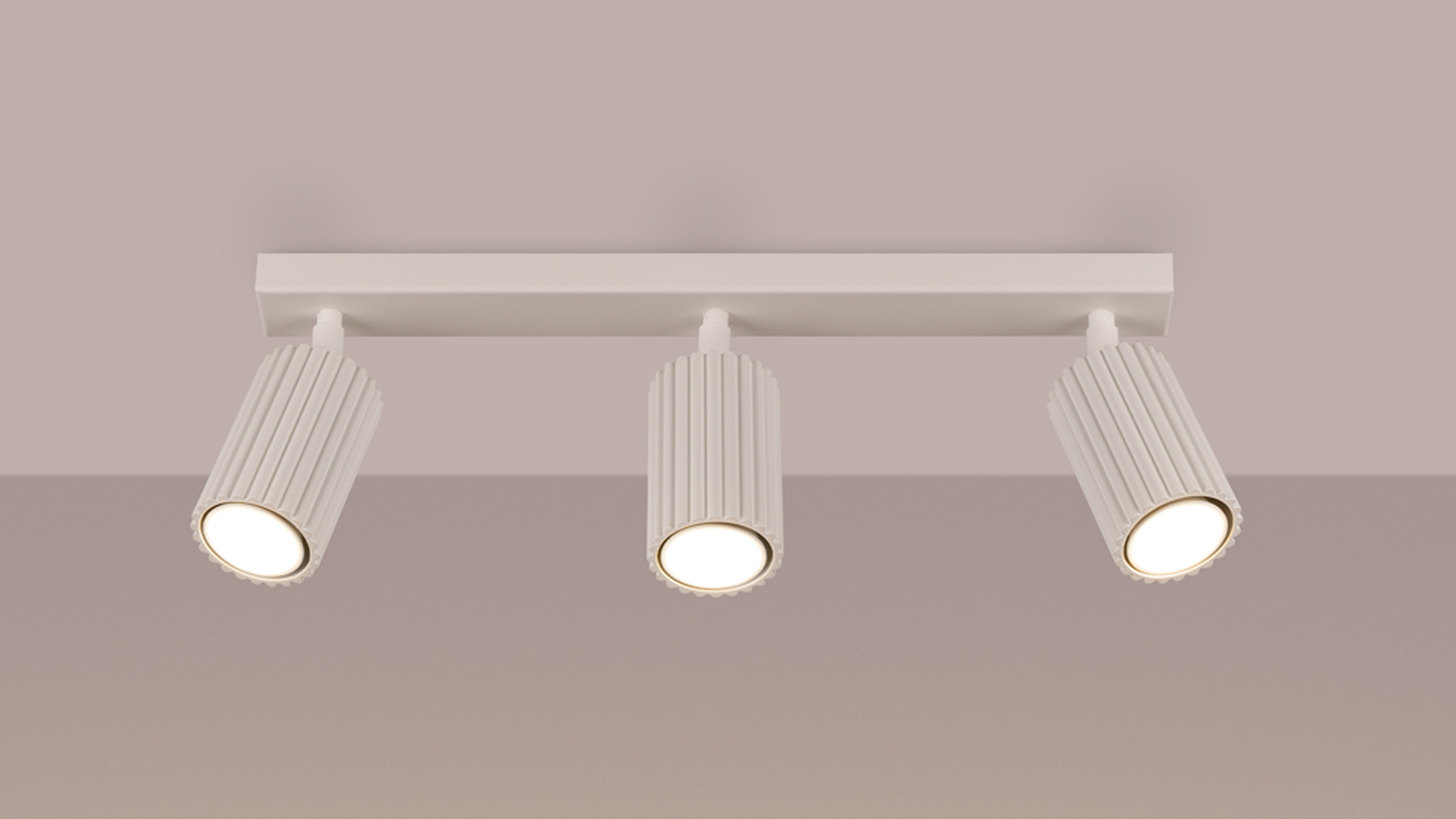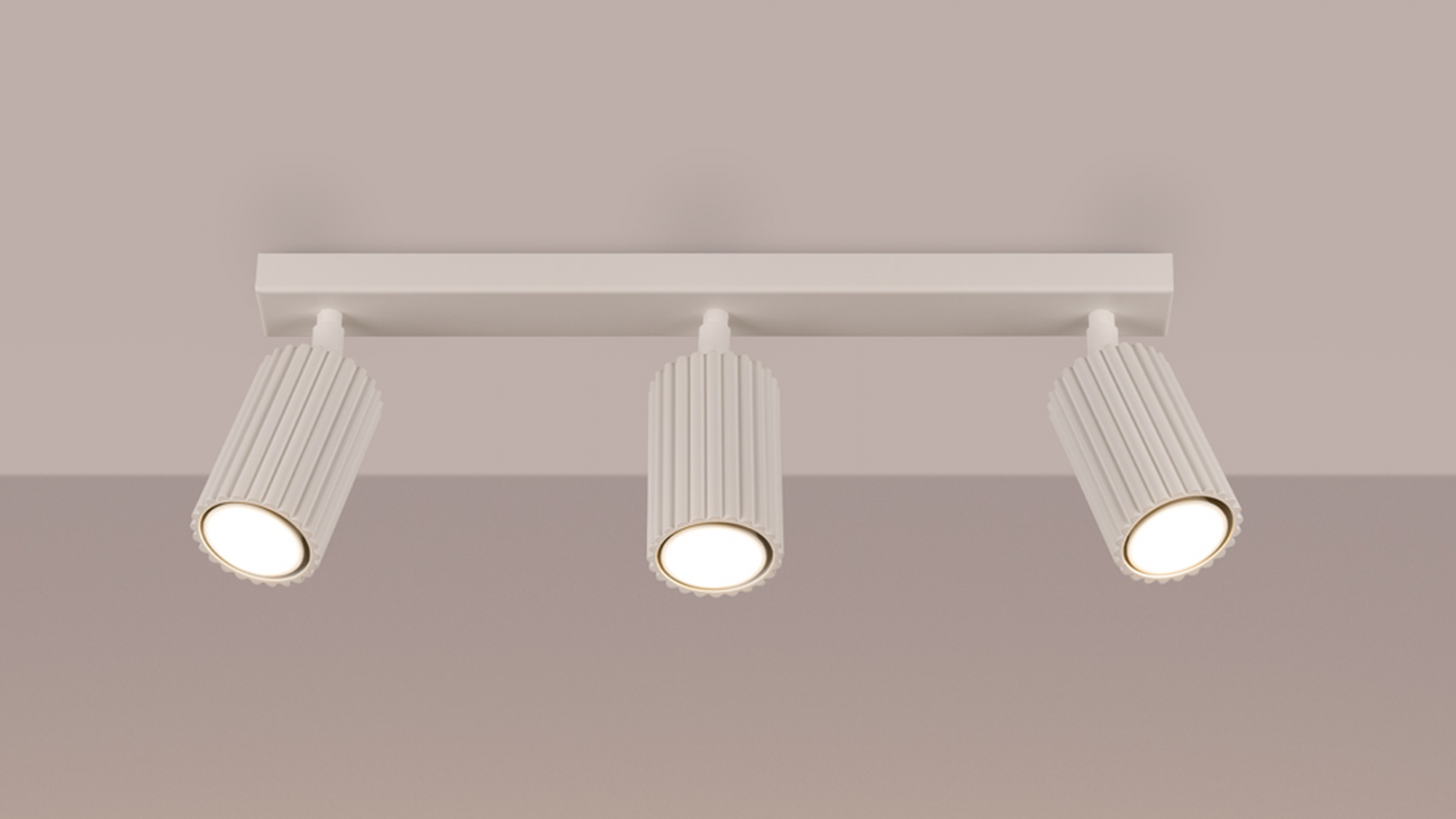 Plafonnier linéaire en aluminium cannelé 3 ampoules beige - Karbon