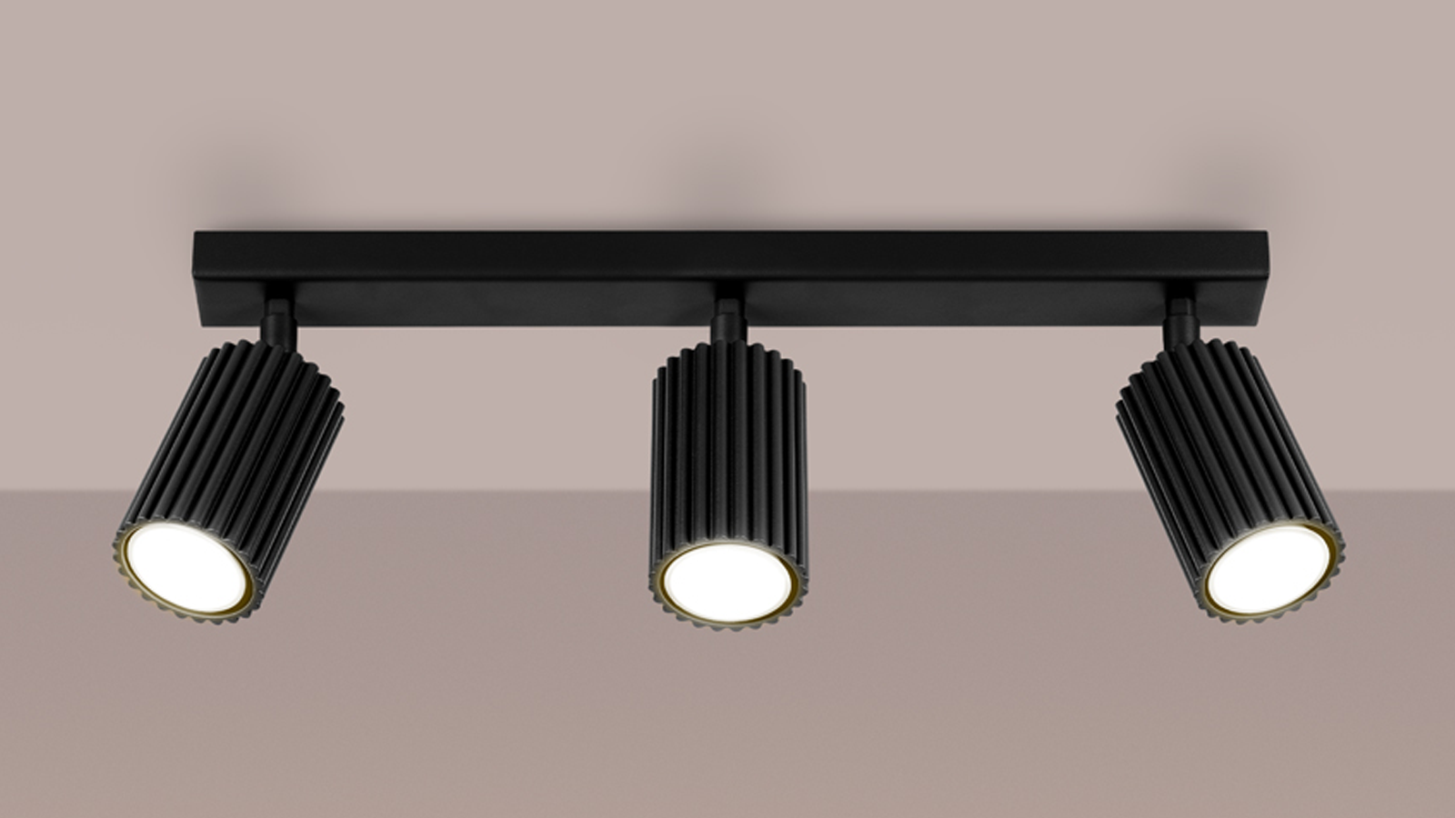 Plafonnier linéaire en aluminium cannelé 3 ampoules noir - Karbon