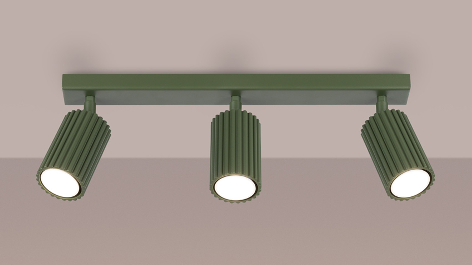 Plafonnier linéaire en aluminium cannelé 3 ampoules vert olive - Karbon