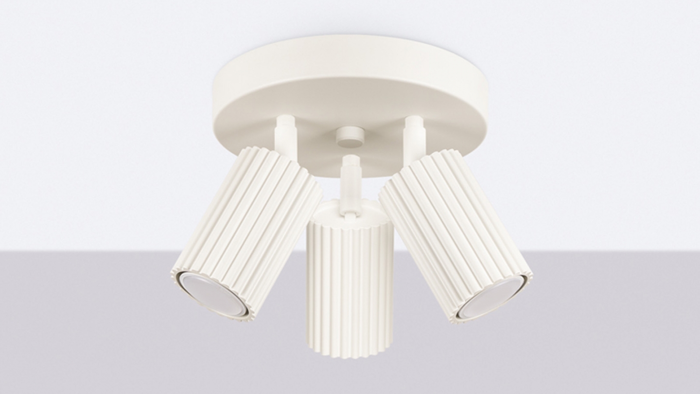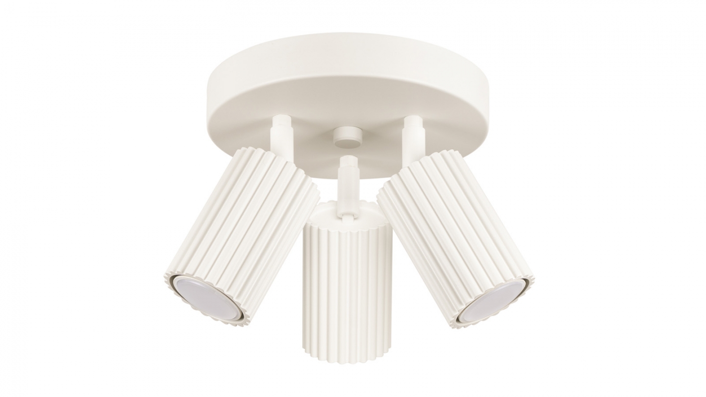 Plafonnier circulaire en aluminium cannelé 3 ampoules beige - Karbon