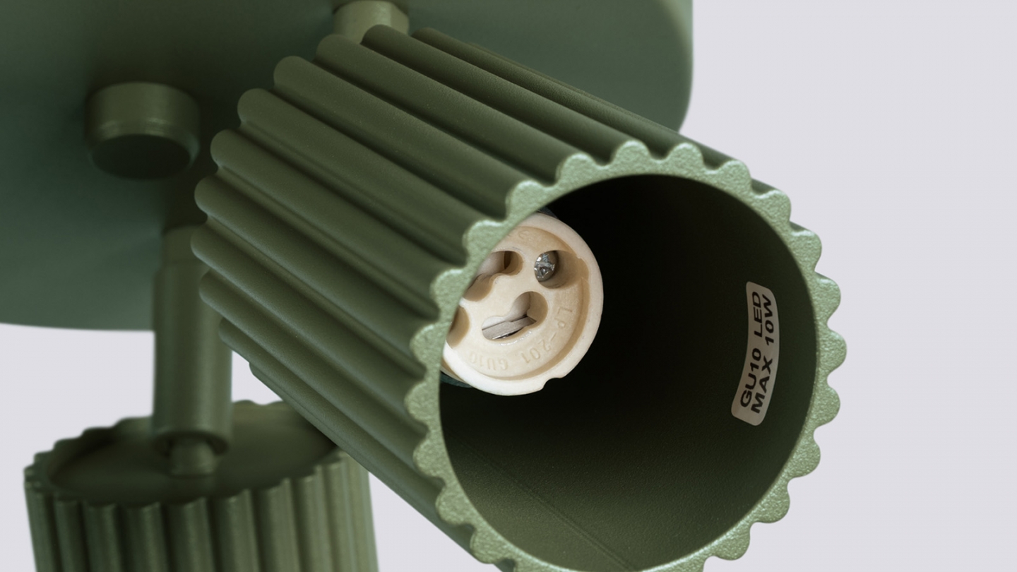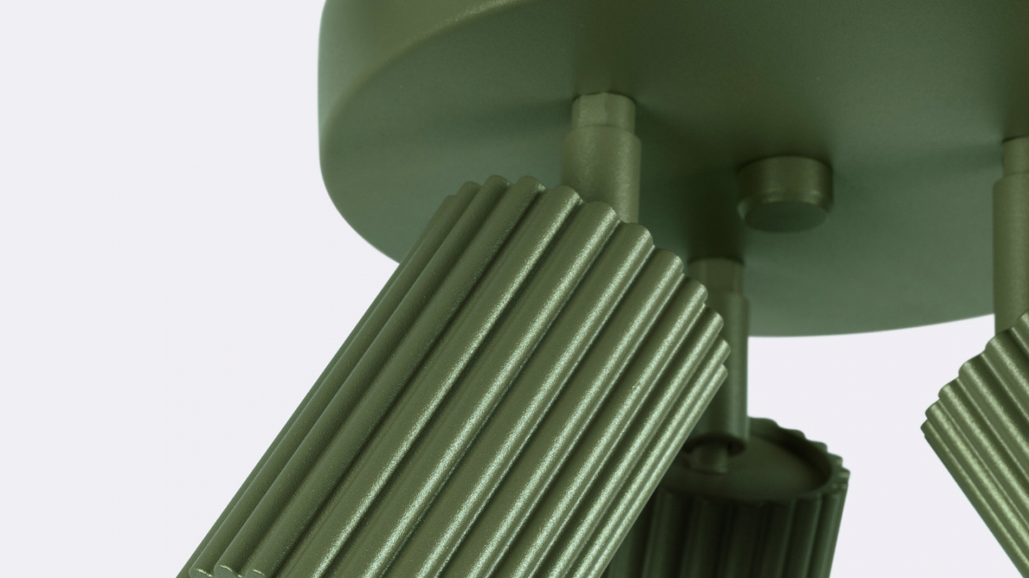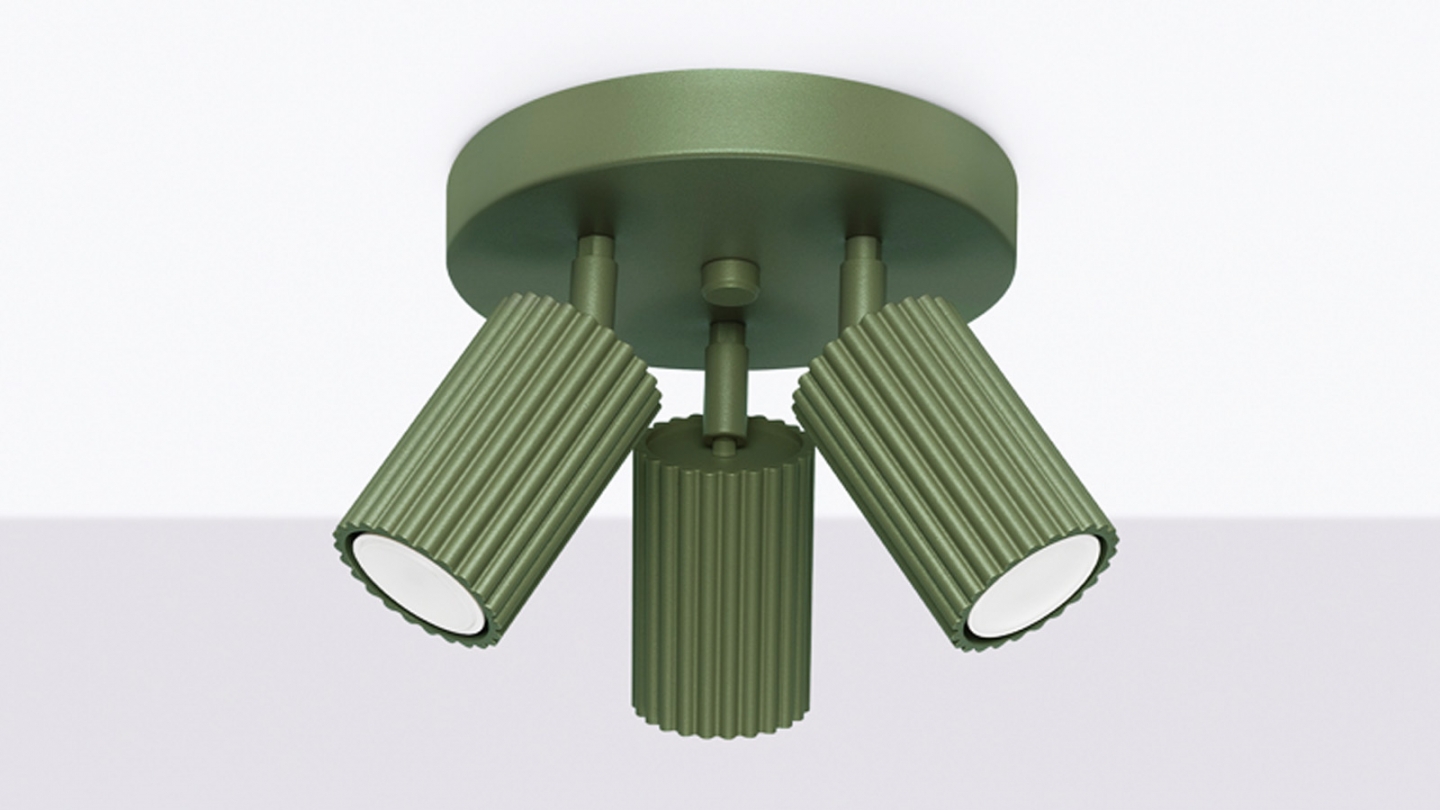 Plafonnier circulaire en aluminium cannelé 3 ampoules vert olive - Karbon