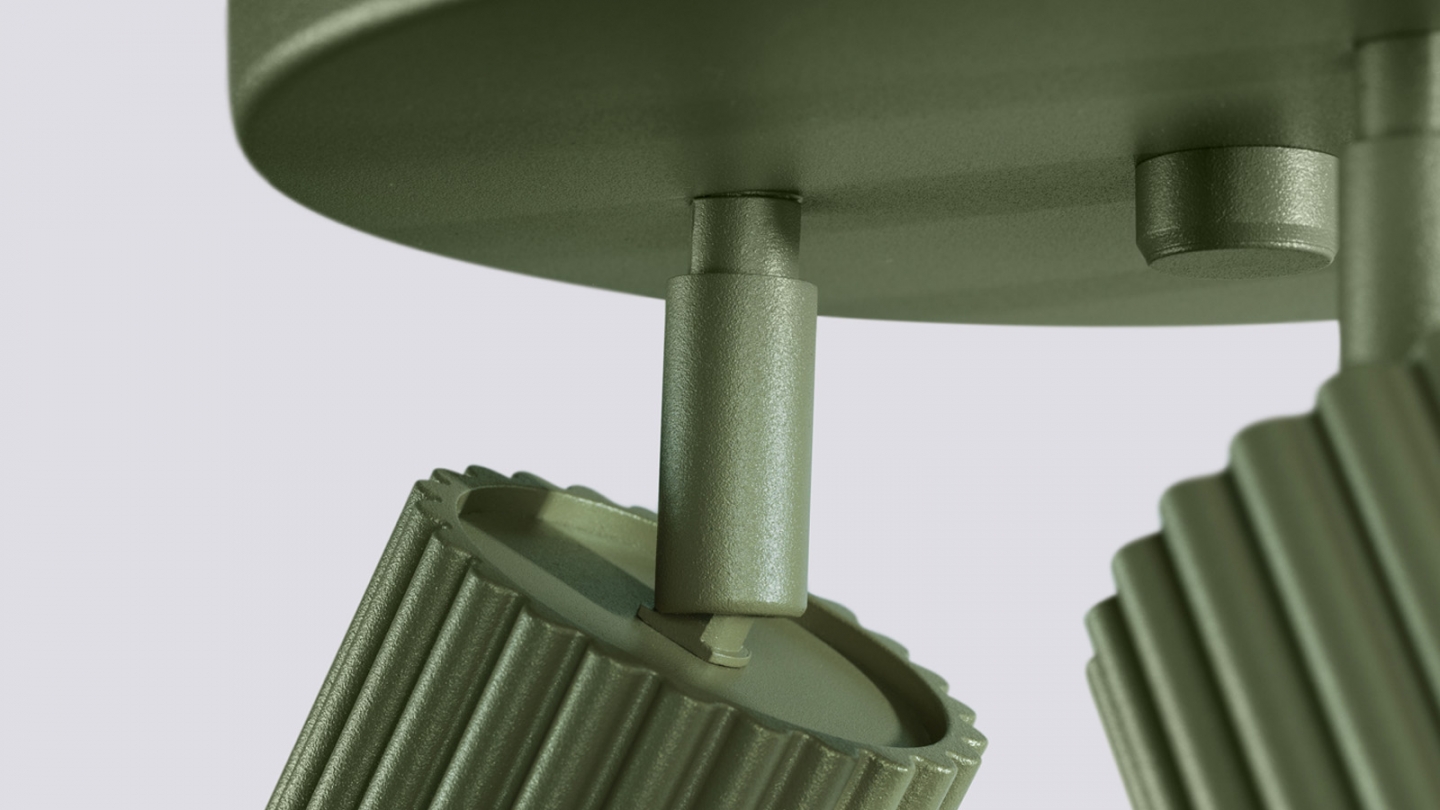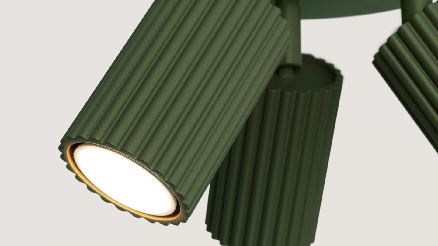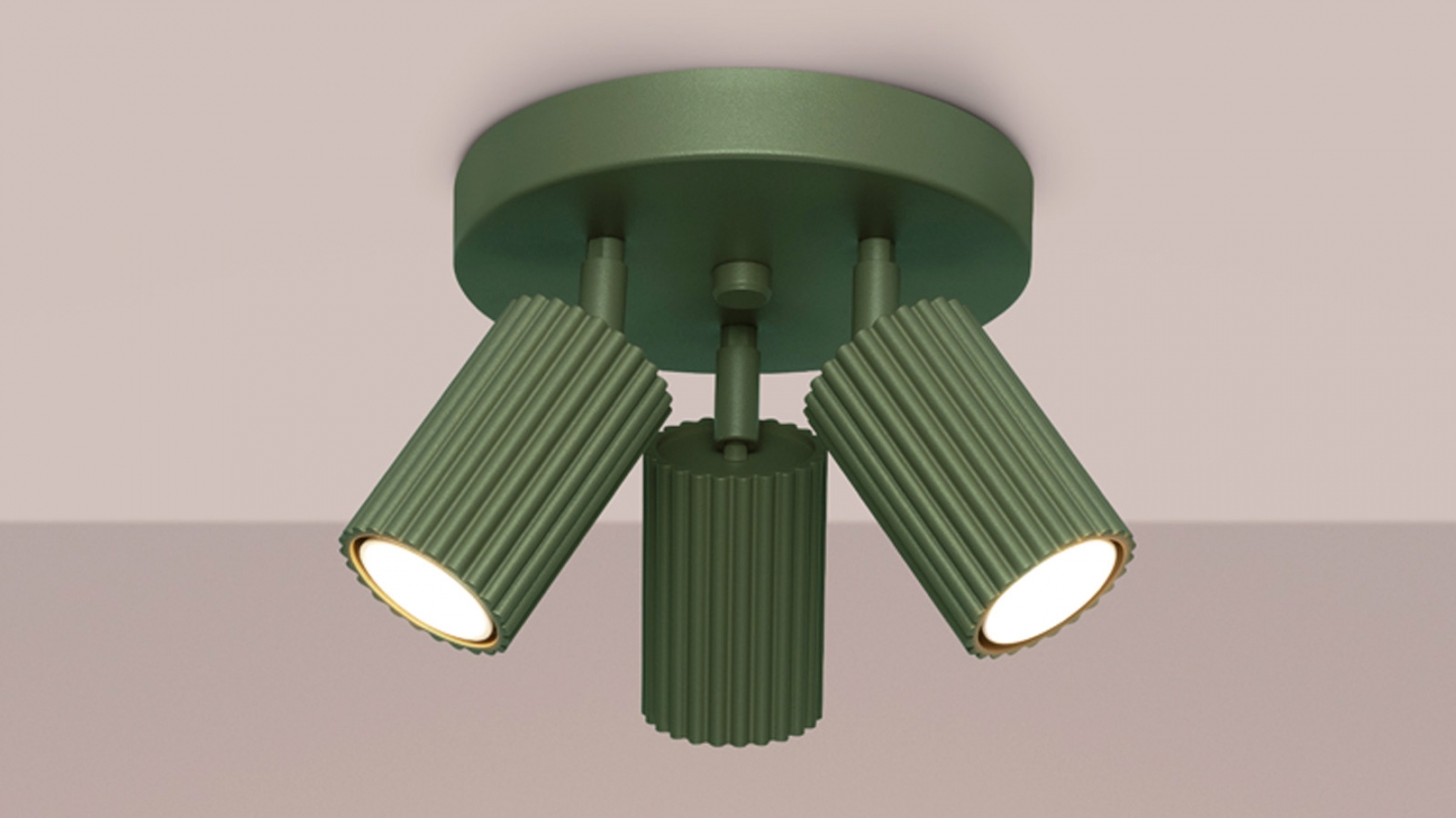 Plafonnier circulaire en aluminium cannelé 3 ampoules vert olive - Karbon
