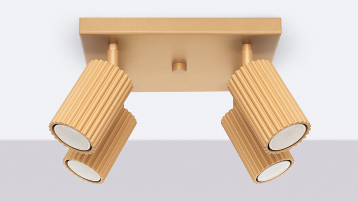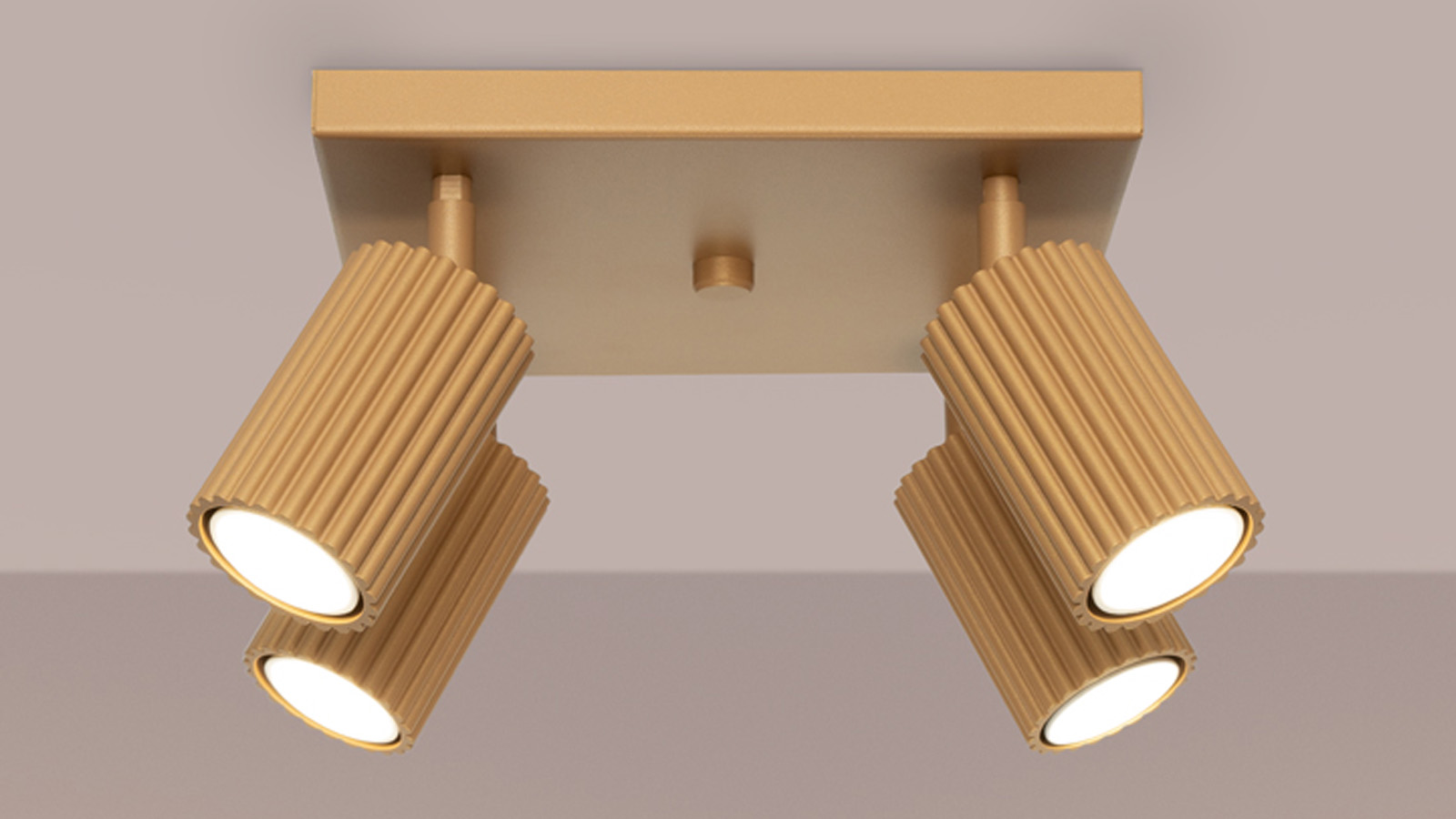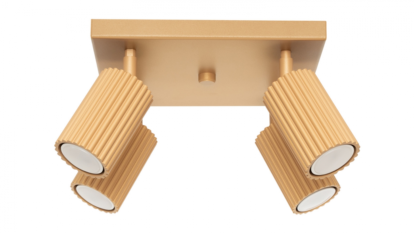 Plafonnier carré en aluminium cannelé 4 ampoules or - Karbon