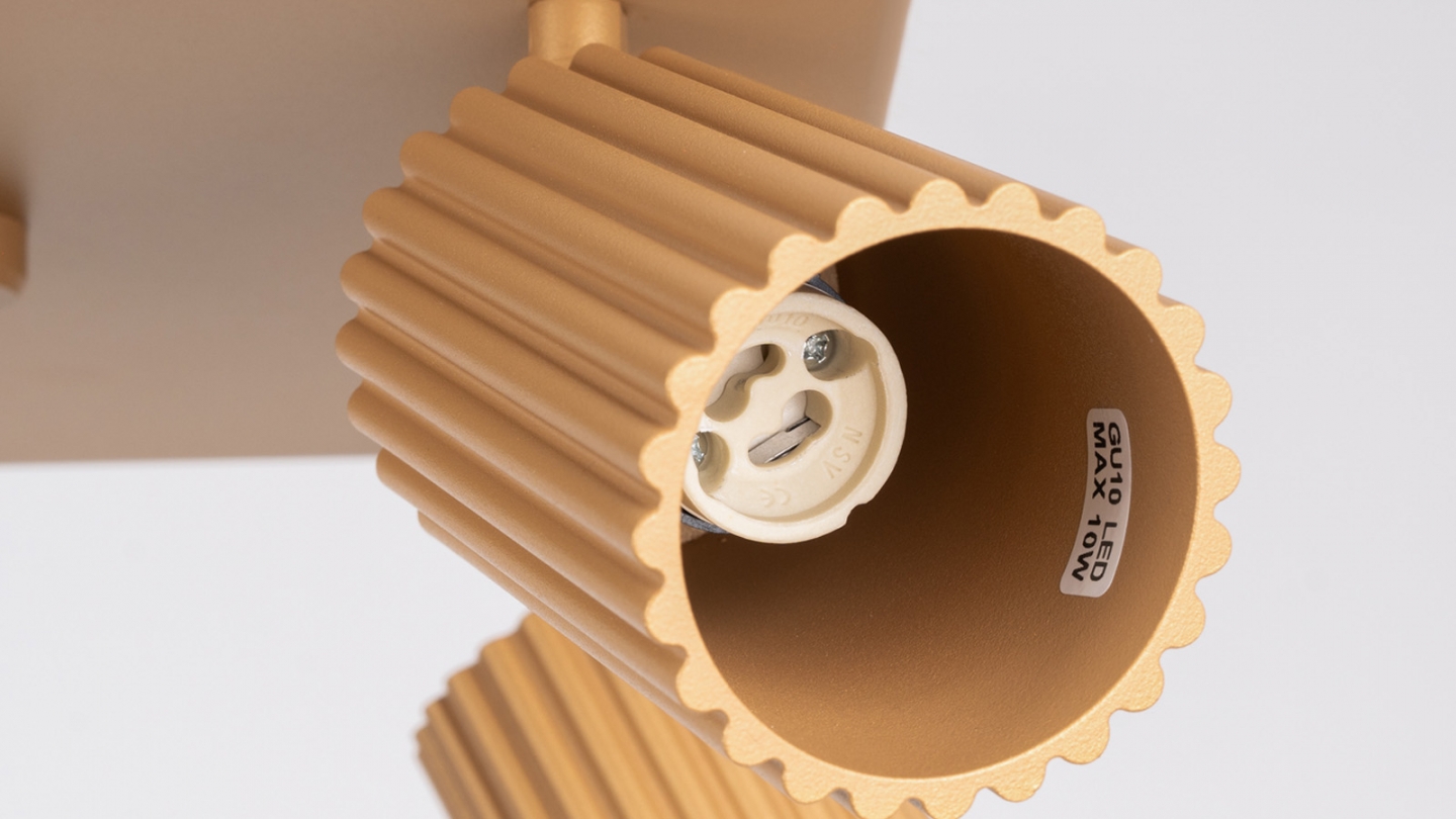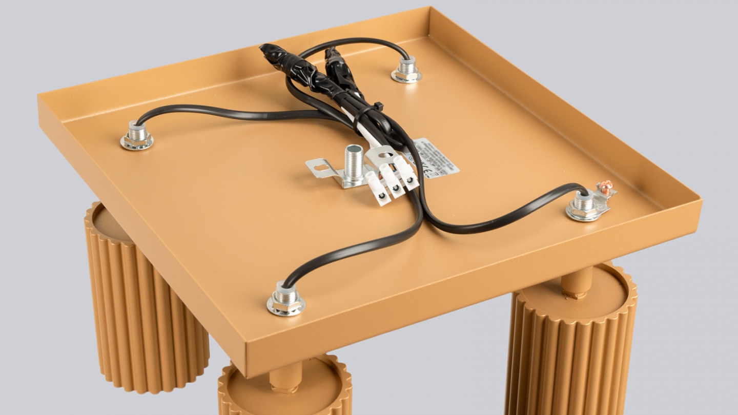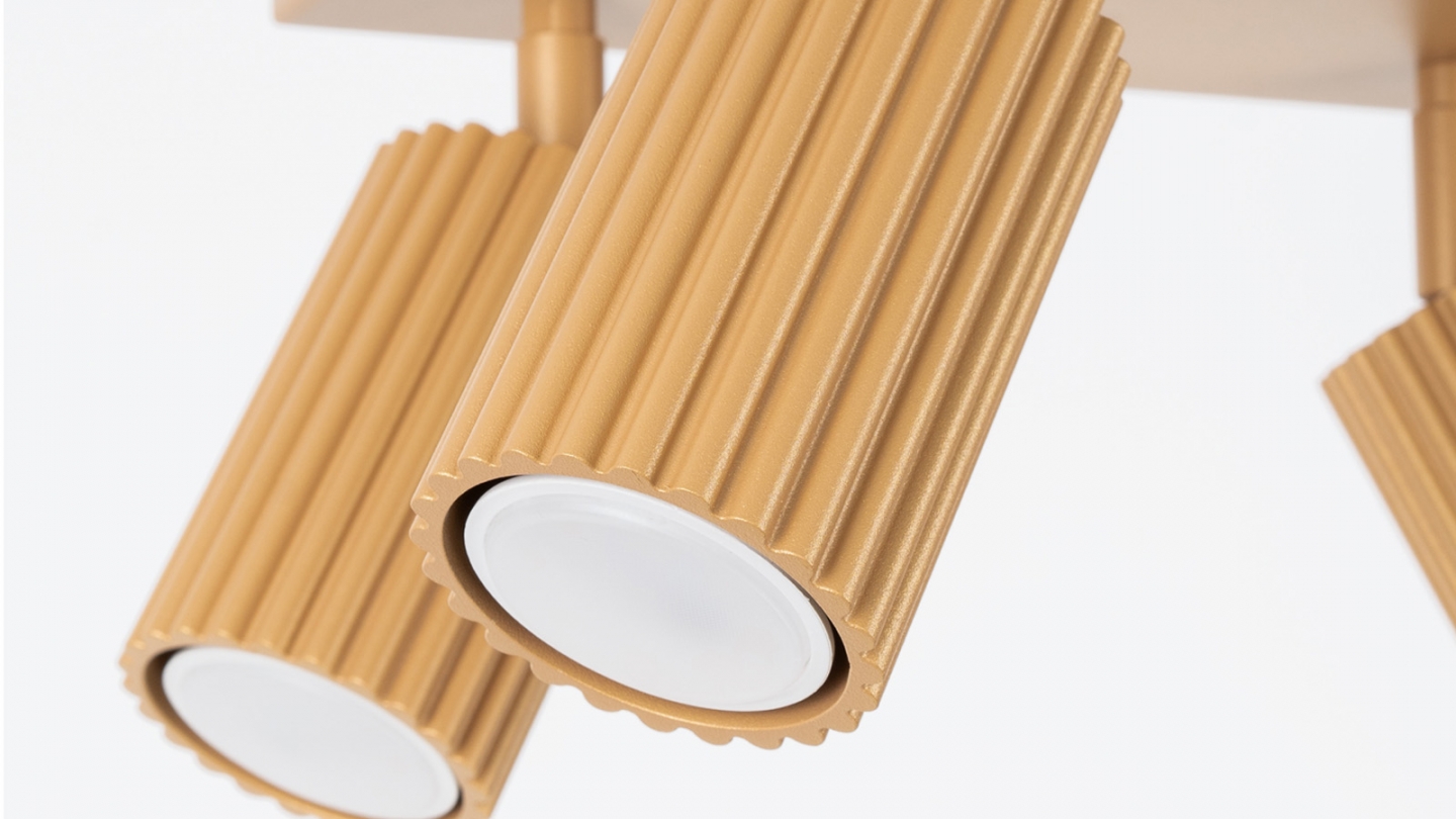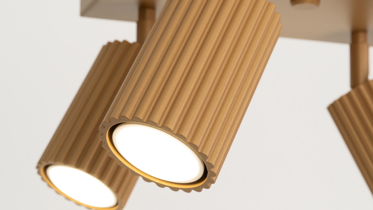 Plafonnier carré en aluminium cannelé 4 ampoules or - Karbon