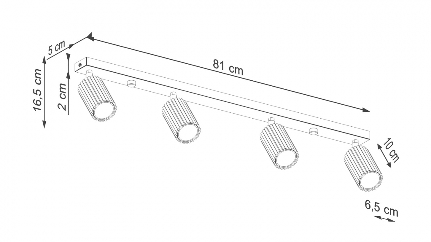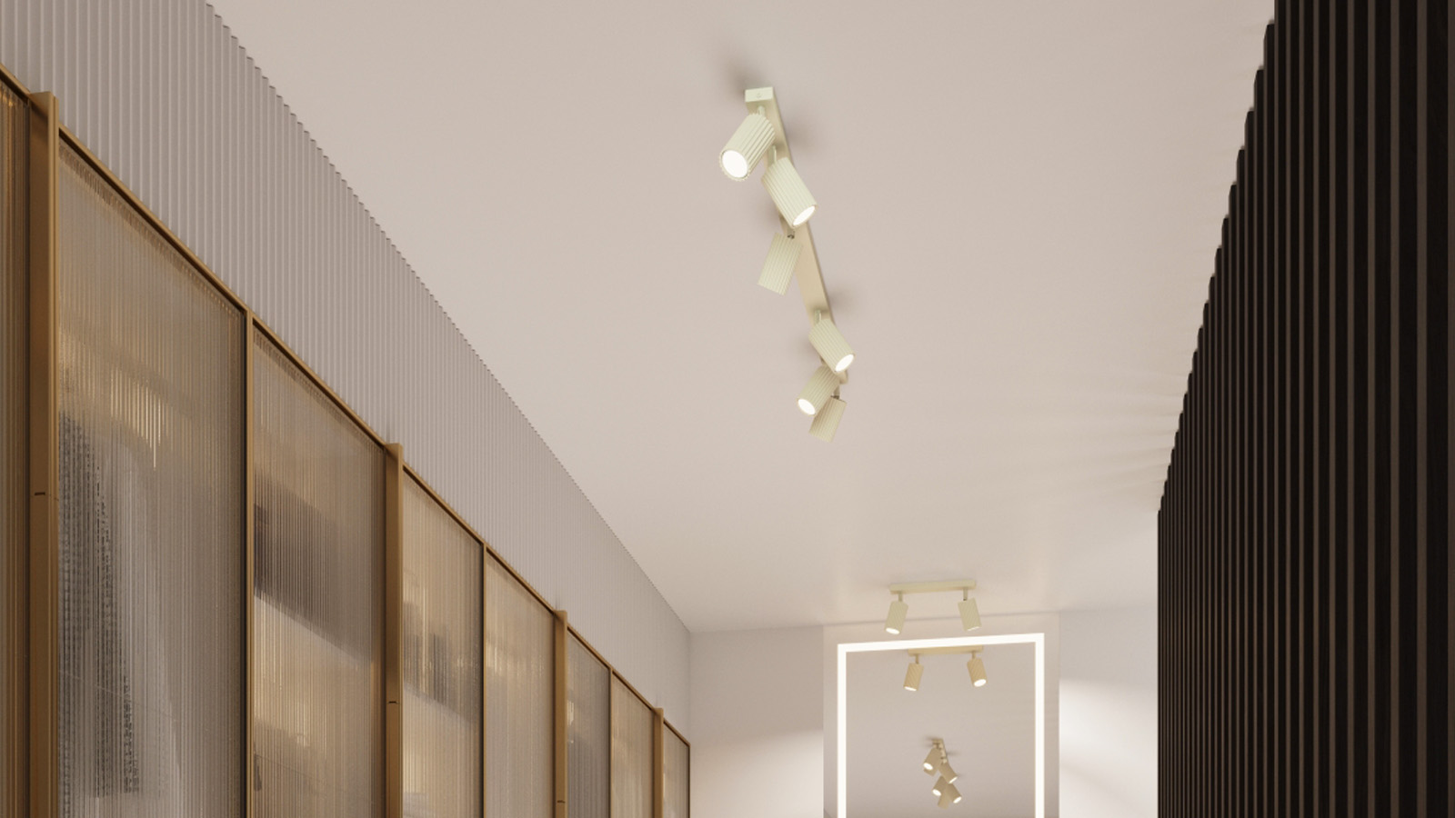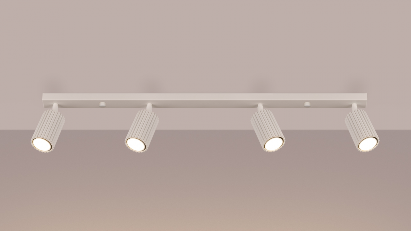 Plafonnier linéaire en aluminium cannelé 4 ampoules beige - Karbon