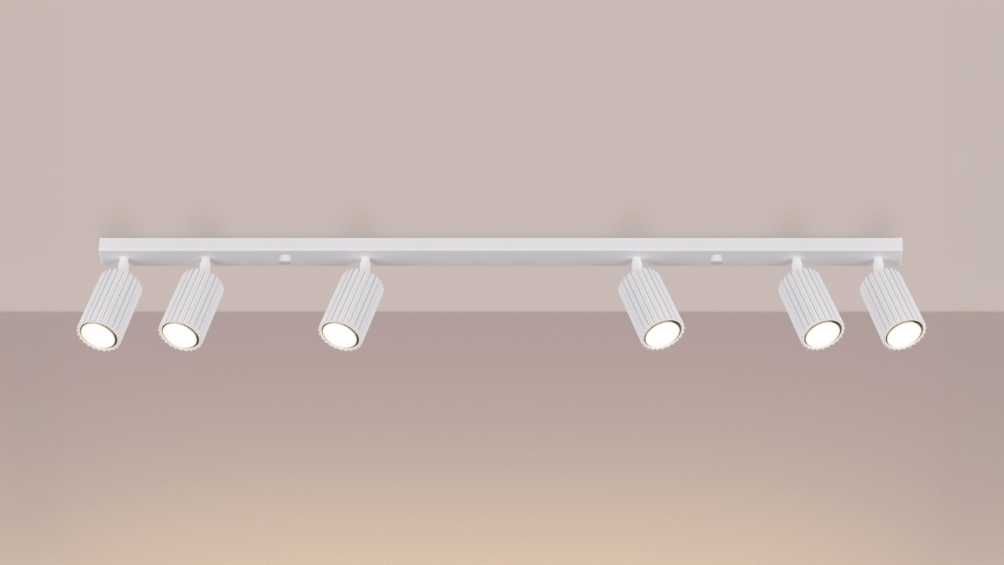 Plafonnier linéaire en aluminium cannelé 6 ampoules blanc - Karbon