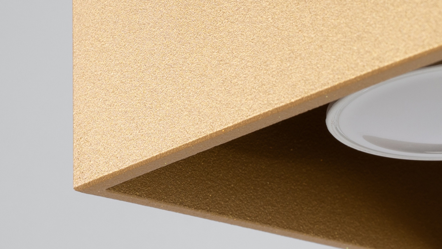 Applique cubique en aluminium doré - Quad La collection QUAD séduit par son design carré minimaliste et sa lumière diffuse à double direction, idéale pour sublimer un mur avec élégance. • Matières : acier• Couleur : doré Dimensions totales : 10x12.5x10 cm • Nombre de souces lumineuses : 1• Type de filetage : G9 - Puissance maximale en watt : 8 IP20...
