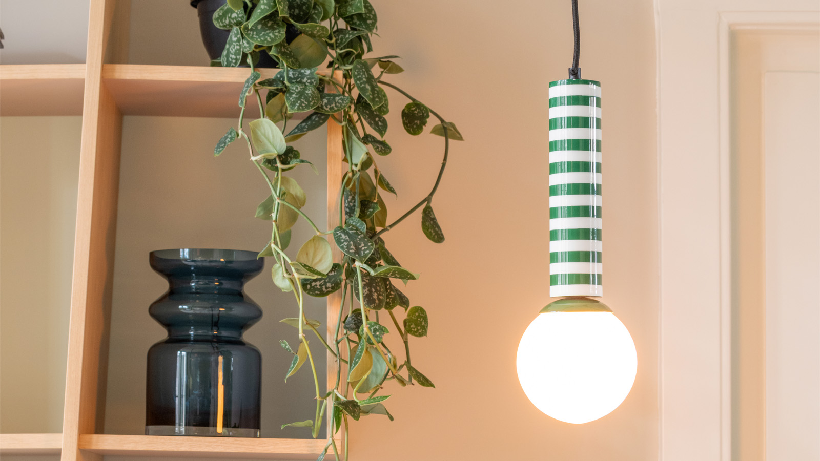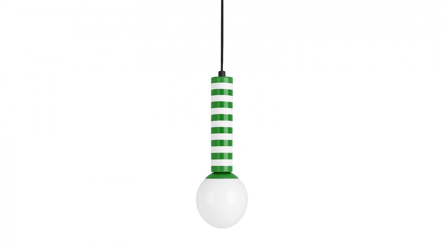 Une suspension en métal au design graphique rayé (hauteur 38 cm, diamètre 12 cm) qui apporte une lumière élégante et une touche moderne à vos espaces.