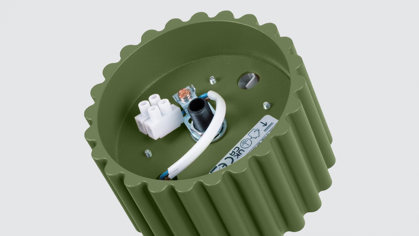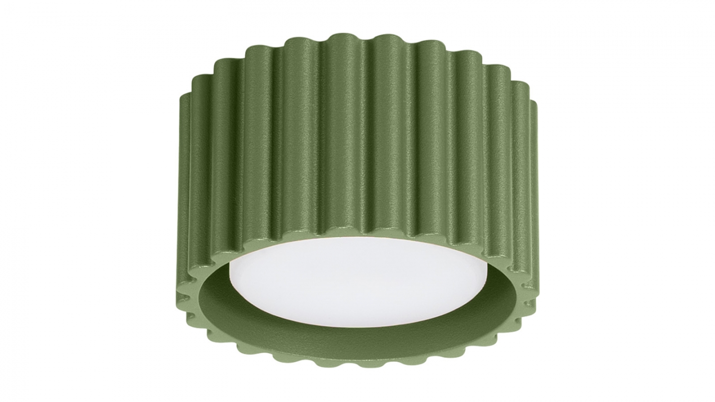 Plafonnier en aluminium cannelé vert olive - Halo• Matières : aluminium/verre• Couleur : vert olive Dimensions totales : 12x12x21 cm • Nombre de souces lumineuses : 1• Type de filetage : G9 - Puissance maximale en watt : 8 IP44 – Pour les zones humides.Ce type de luminaire convient aux pièces humides comme les salles de bains, notamment en zone 2...