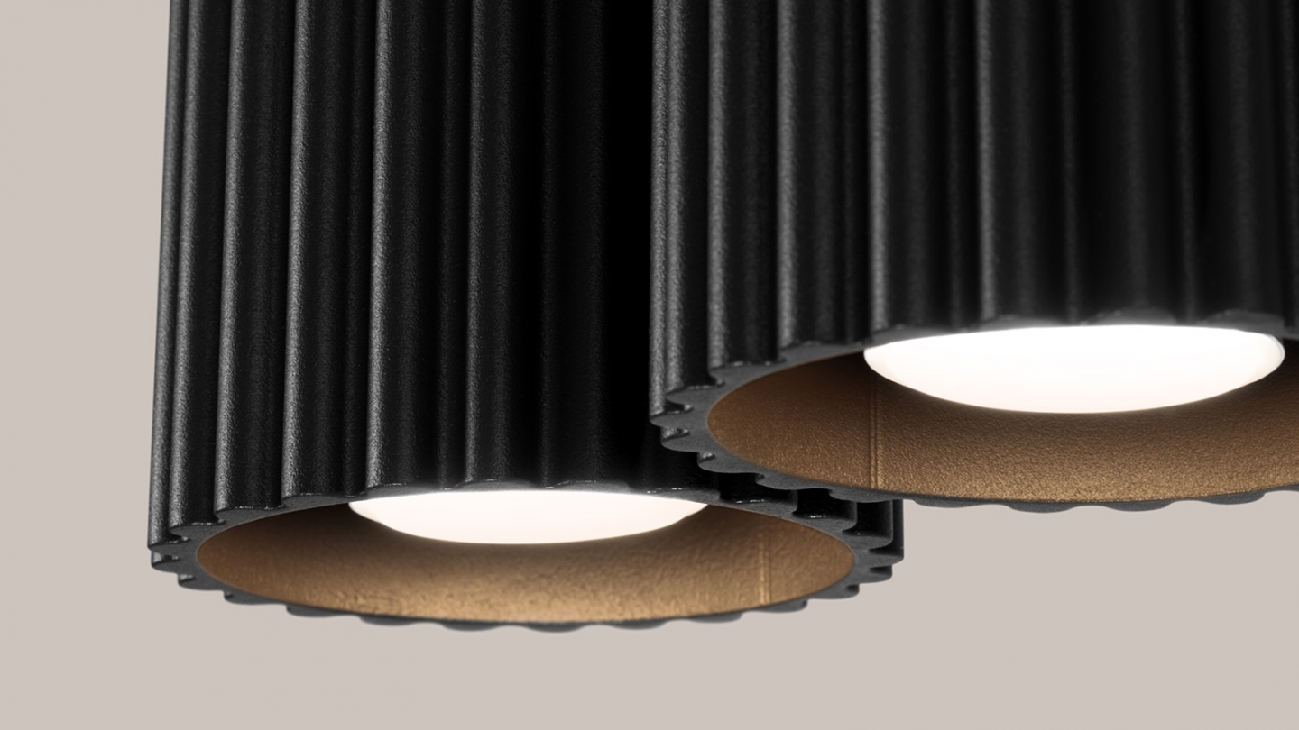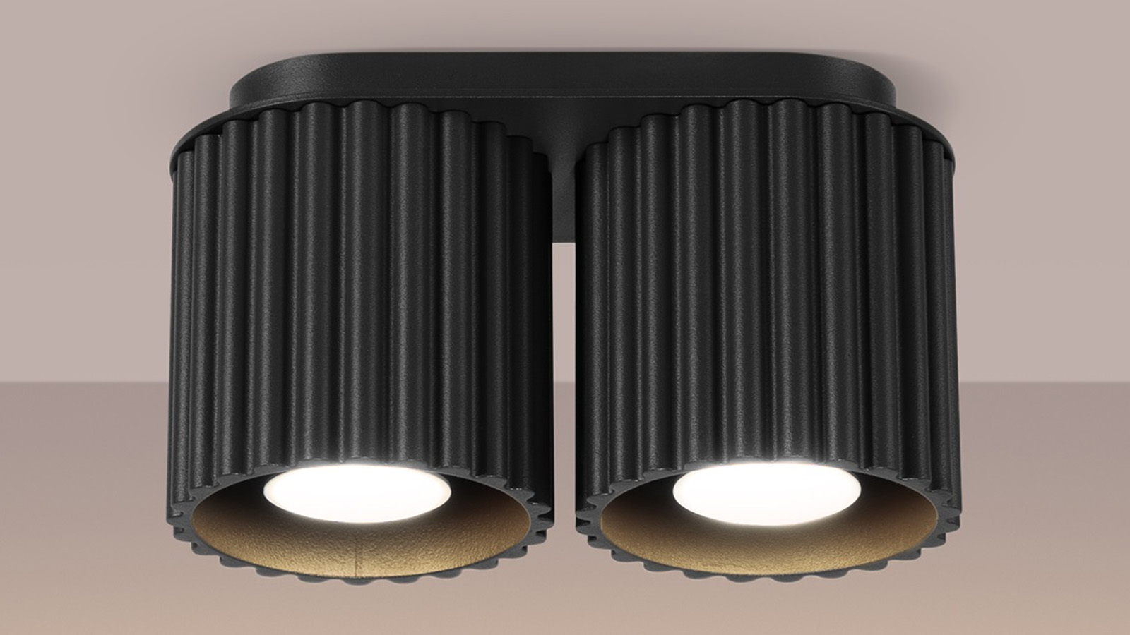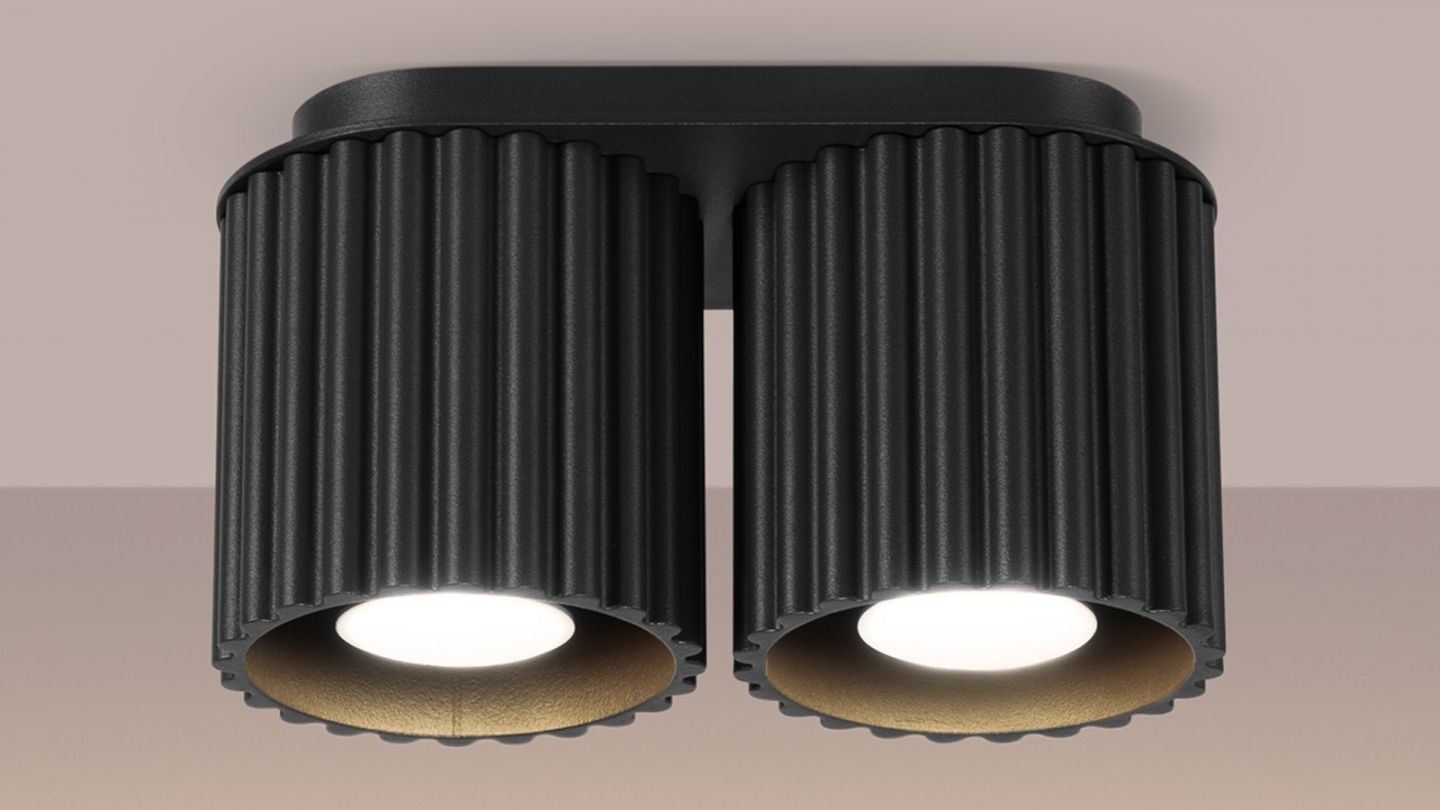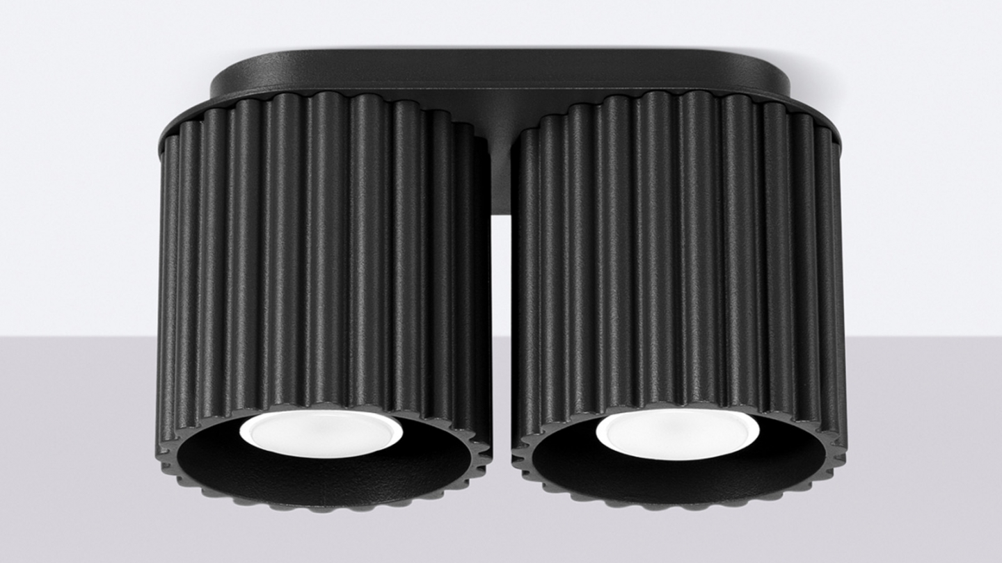 Plafonnier cannelé 2 lumières noir - Aura