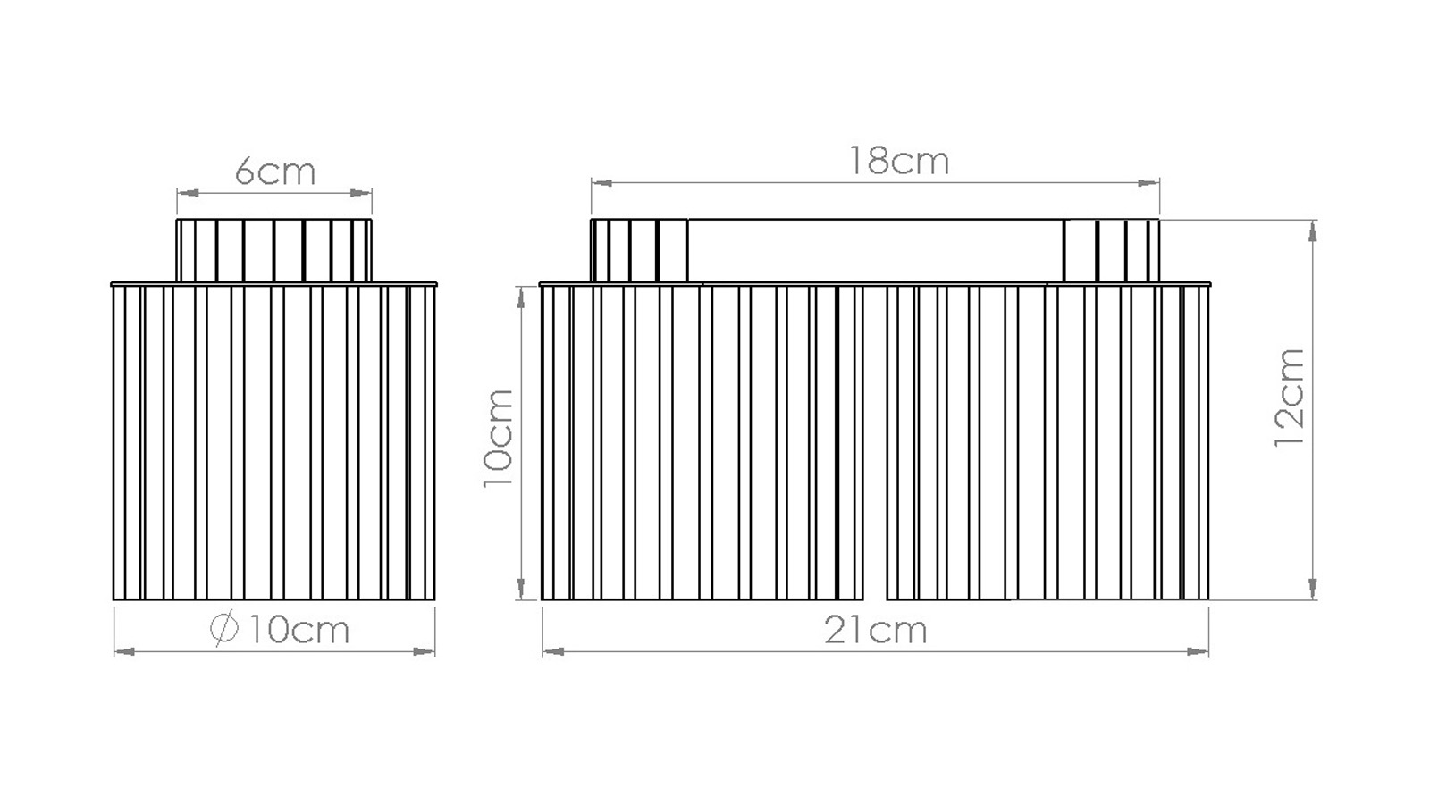 Dimensions totales : 21 x 10 x 12 cm