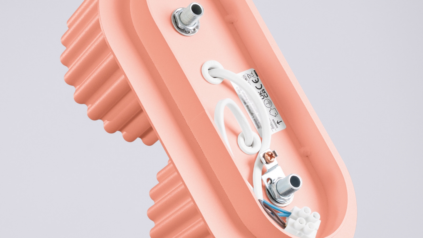 Plafonnier en aluminium cannelé pêche - Halo La collection HALO mêle minimalisme et originalité avec son corps cannelé et sa sphère en verre laiteux, pour une lumière douce et enveloppante. Déclinée en suspensions, appliques, plafonniers et lampes de bureau, elle s’adapte à toutes les pièces, y compris les salles de bains grâce à son indice IP44....