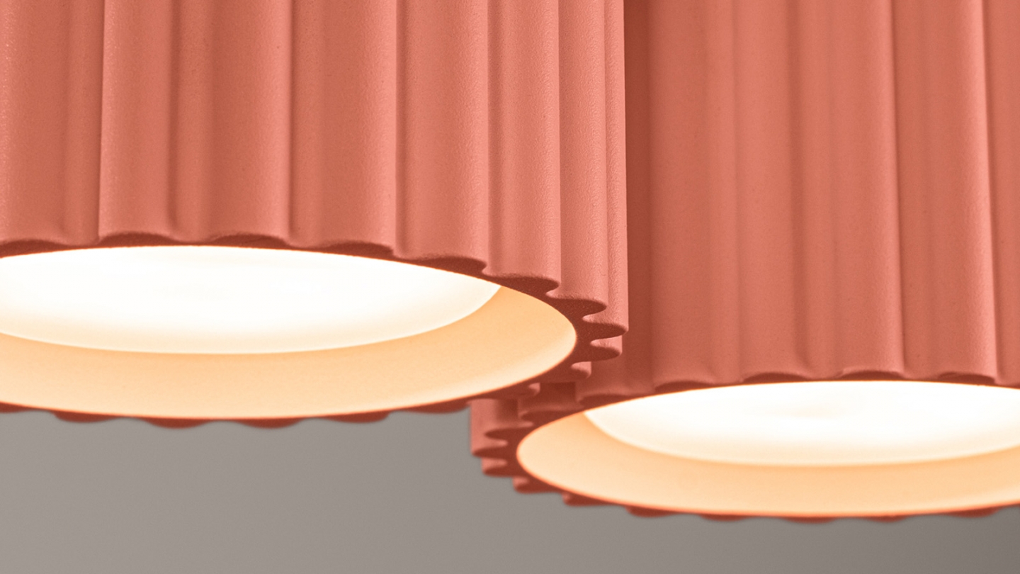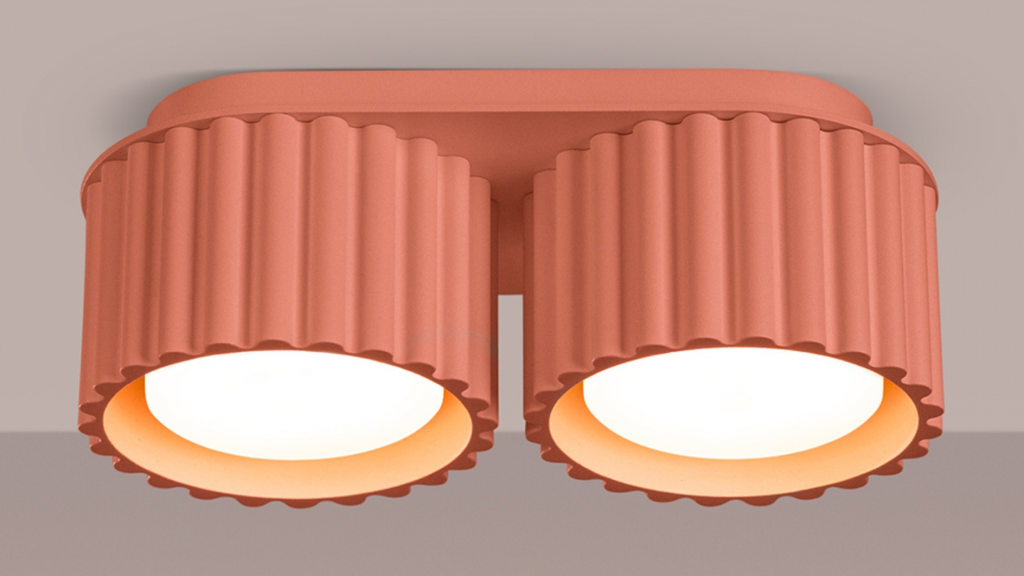 Plafonnier cannelé 2 lumières pêche - Aura