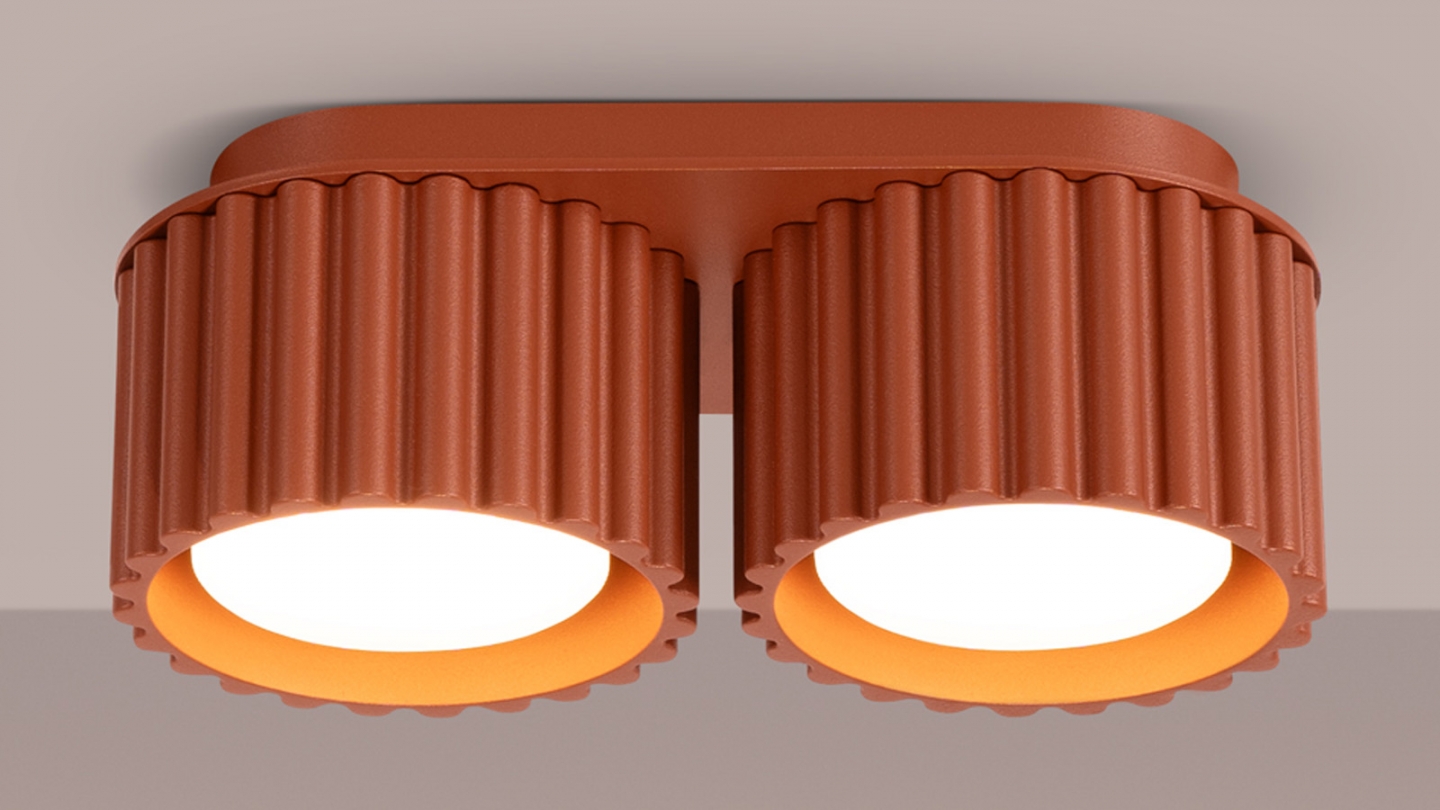 Plafonnier cannelé 2 lumières terracotta - Aura