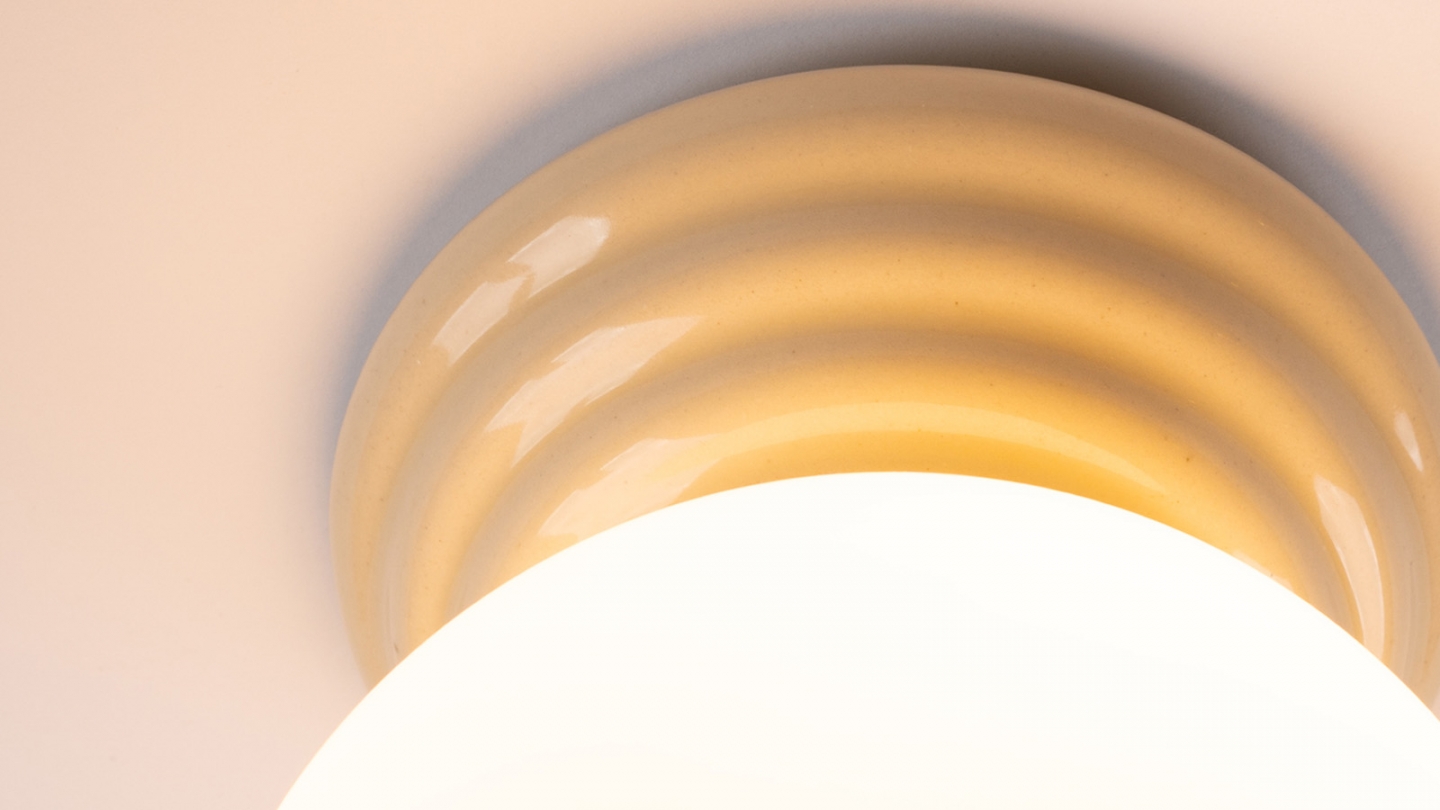 Plafonnier en aluminium cannelé pêche - Halo La collection HALO mêle minimalisme et originalité avec son corps cannelé et sa sphère en verre laiteux, pour une lumière douce et enveloppante. Déclinée en suspensions, appliques, plafonniers et lampes de bureau, elle s’adapte à toutes les pièces, y compris les salles de bains grâce à son indice IP44....