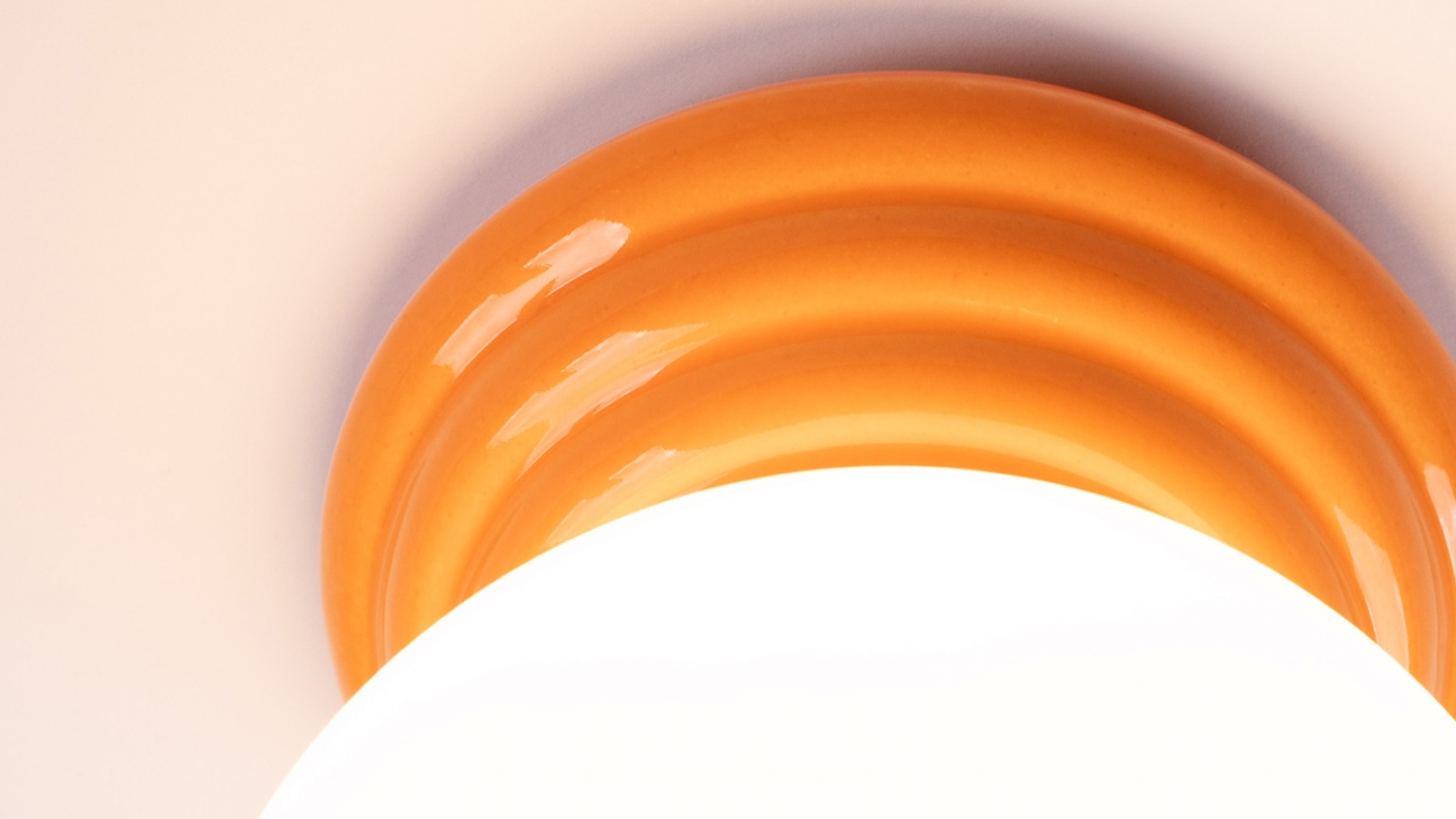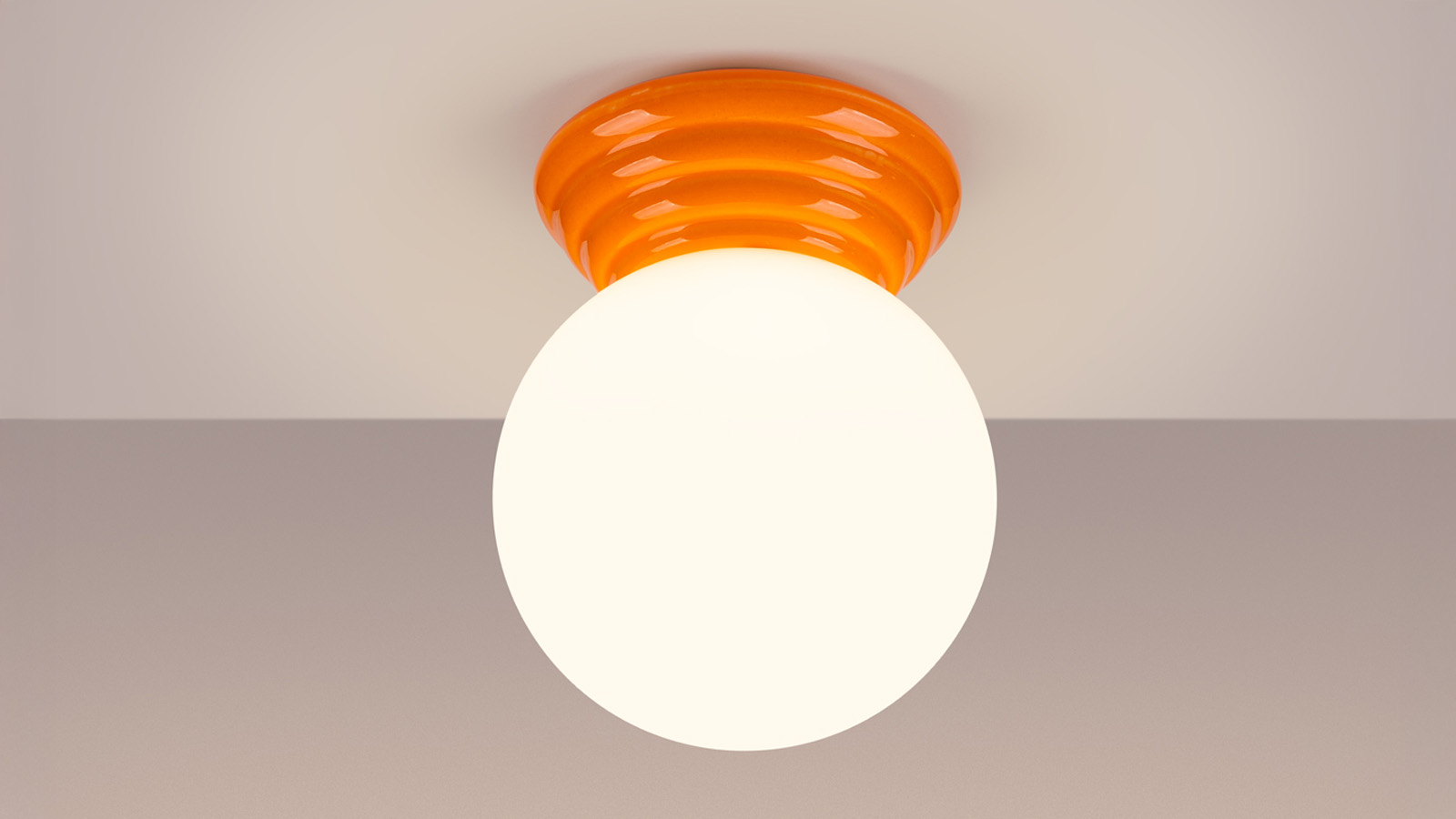 Plafonnier en aluminium cannelé terracotta - Halo La collection HALO mêle minimalisme et originalité avec son corps cannelé et sa sphère en verre laiteux, pour une lumière douce et enveloppante. Déclinée en suspensions, appliques, plafonniers et lampes de bureau, elle s’adapte à toutes les pièces, y compris les salles de bains grâce à son indice IP44....
