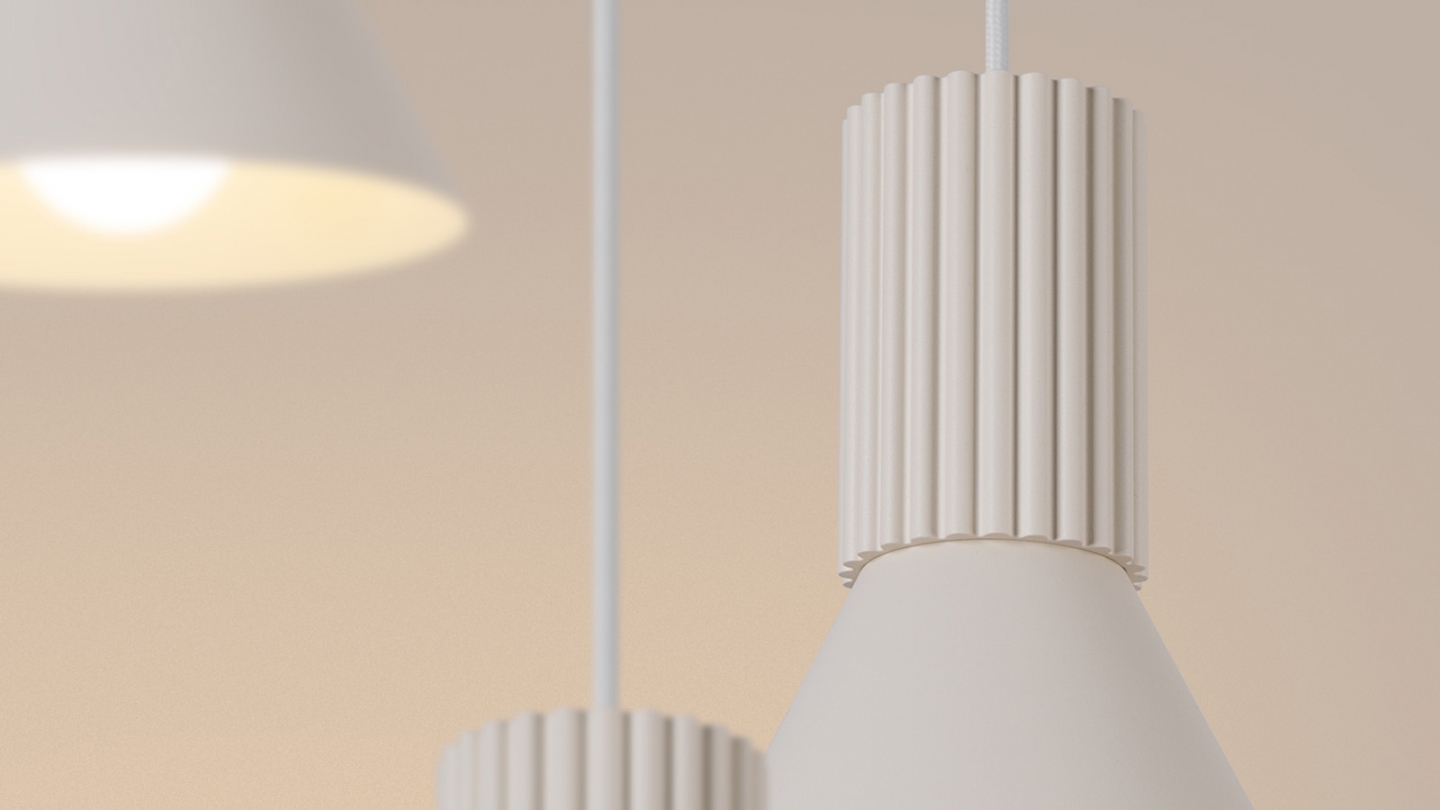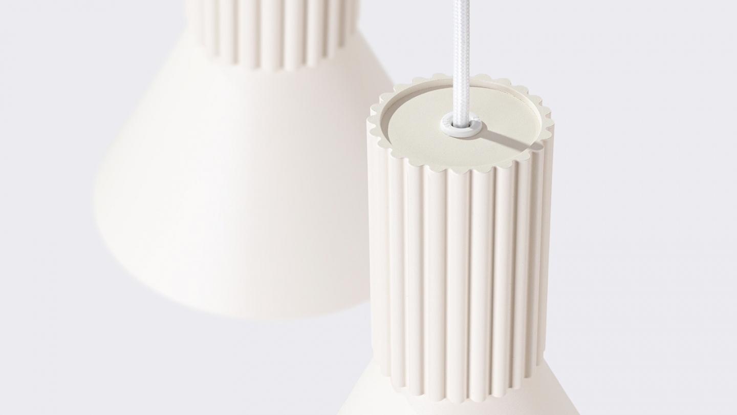 Suspension cannelée Beige - Estria Le luminaire suspendu ESTRIA incarne la modernité dans une version minimaliste.Son design cannelé unique apporte du caractère tout en diffusant la lumière de façon homogène, créant une atmosphère douce et chaleureuse. Versions disponiblesLa suspension ESTRIA est proposée en deux versions (1 et 3 points lumineux), qui...