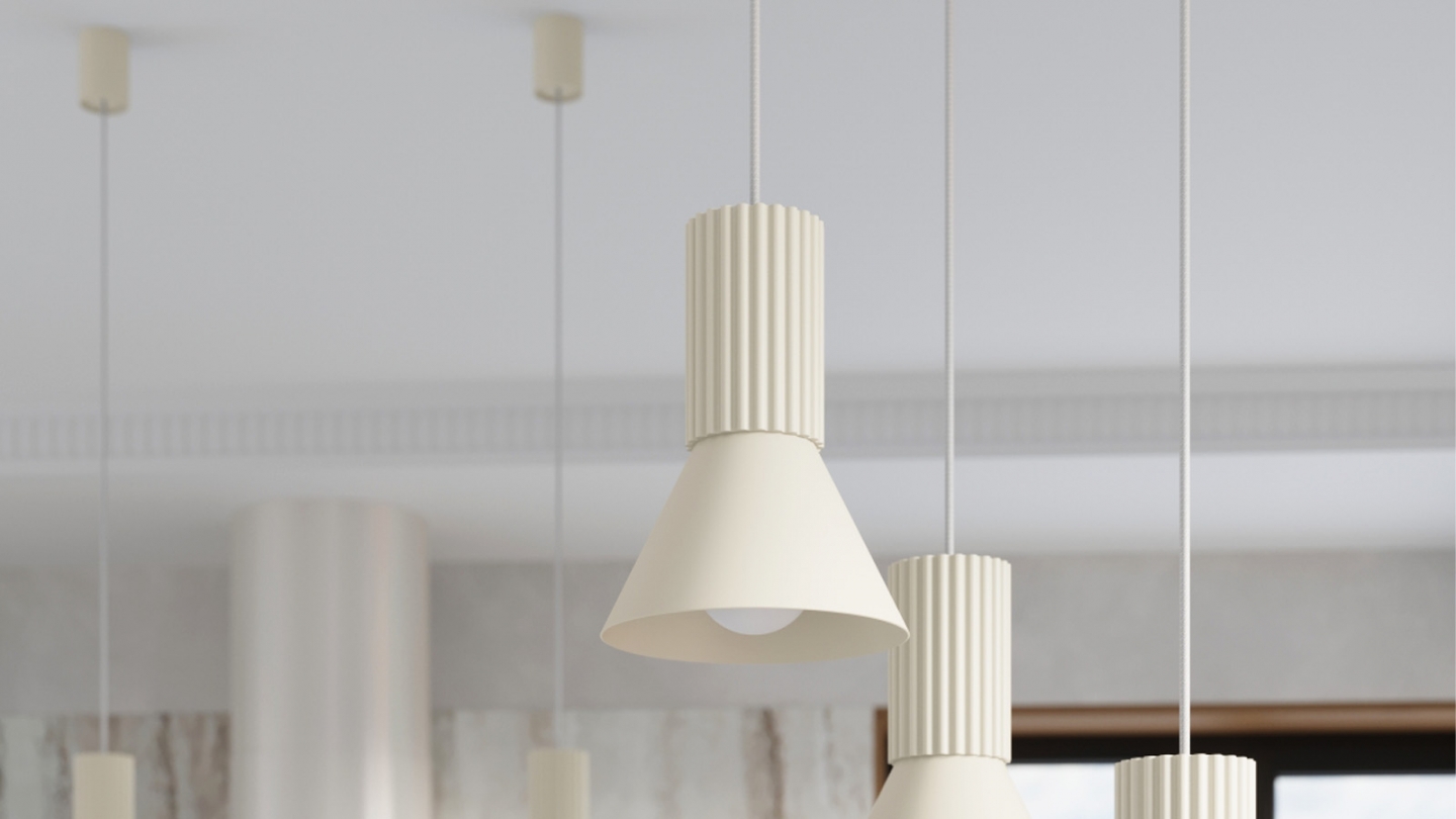 La suspension ESTRIA est proposée en deux versions (1 et 3 points lumineux), qui se distinguent par leur taille tout en conservant le même design raffiné.