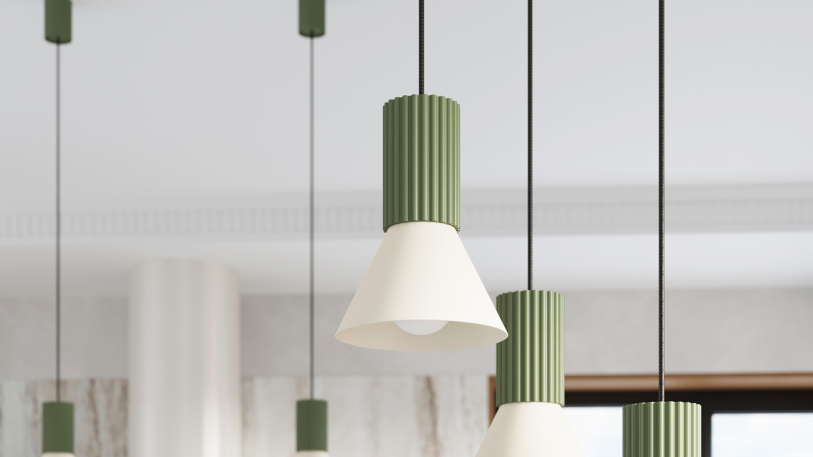 Suspension cannelée beige / vert olive - Estria
