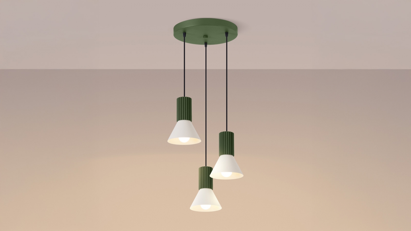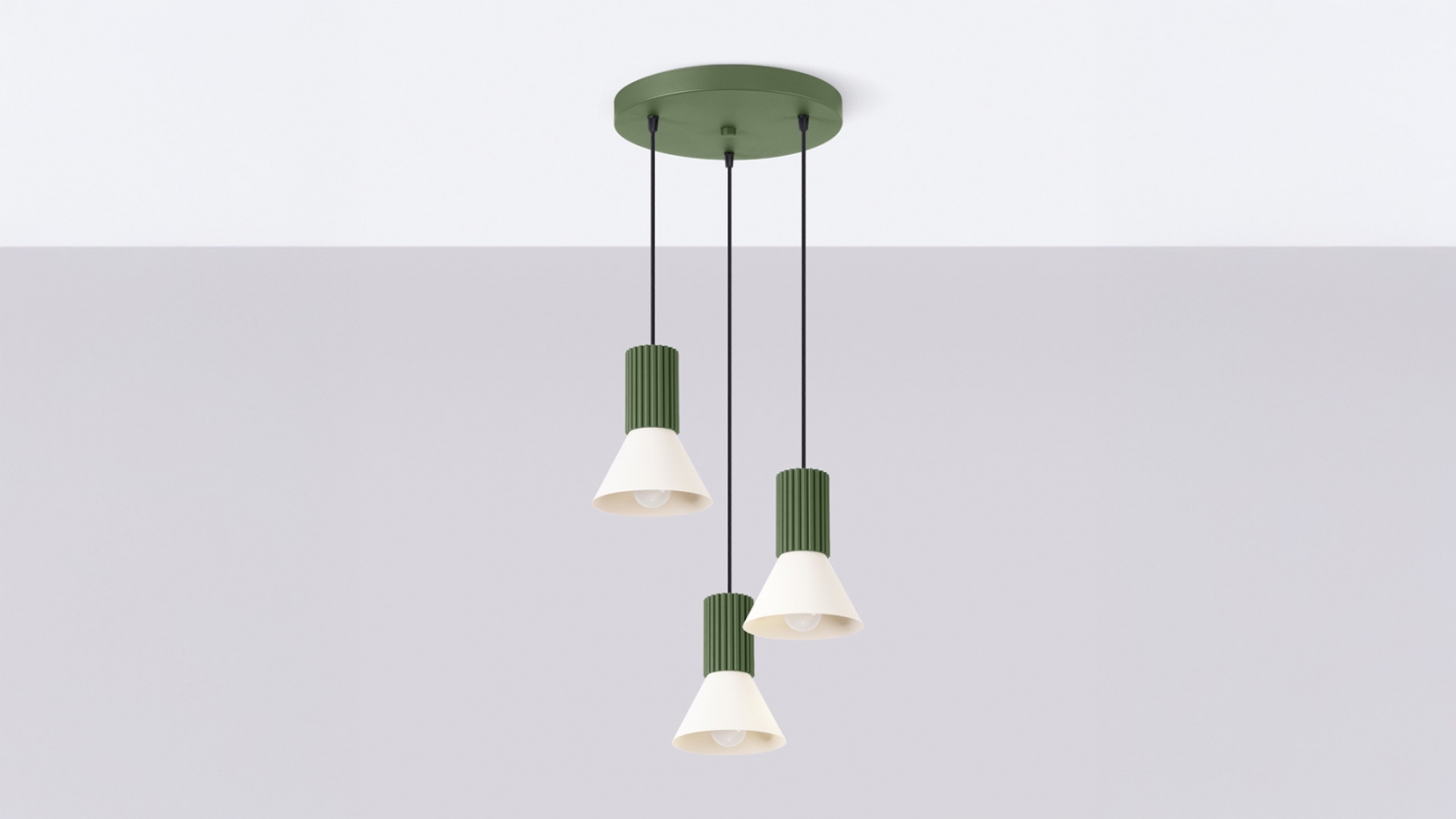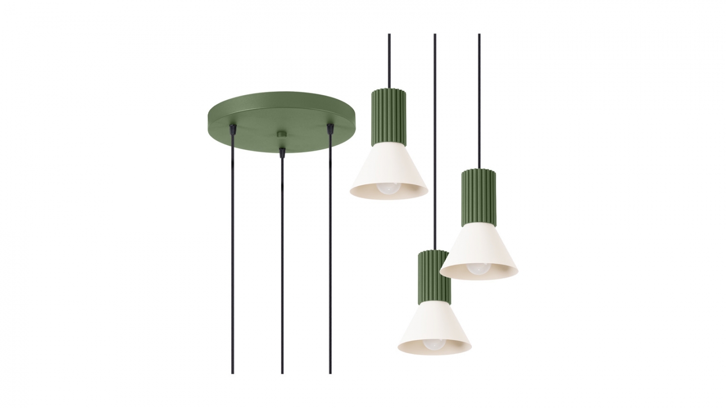 Suspension cannelée 3 lumières beige / vert olive - Estria