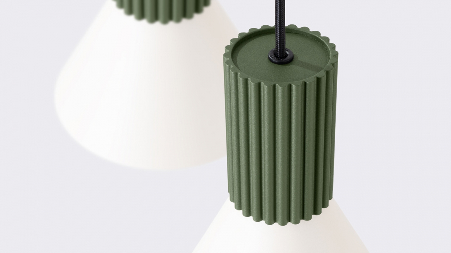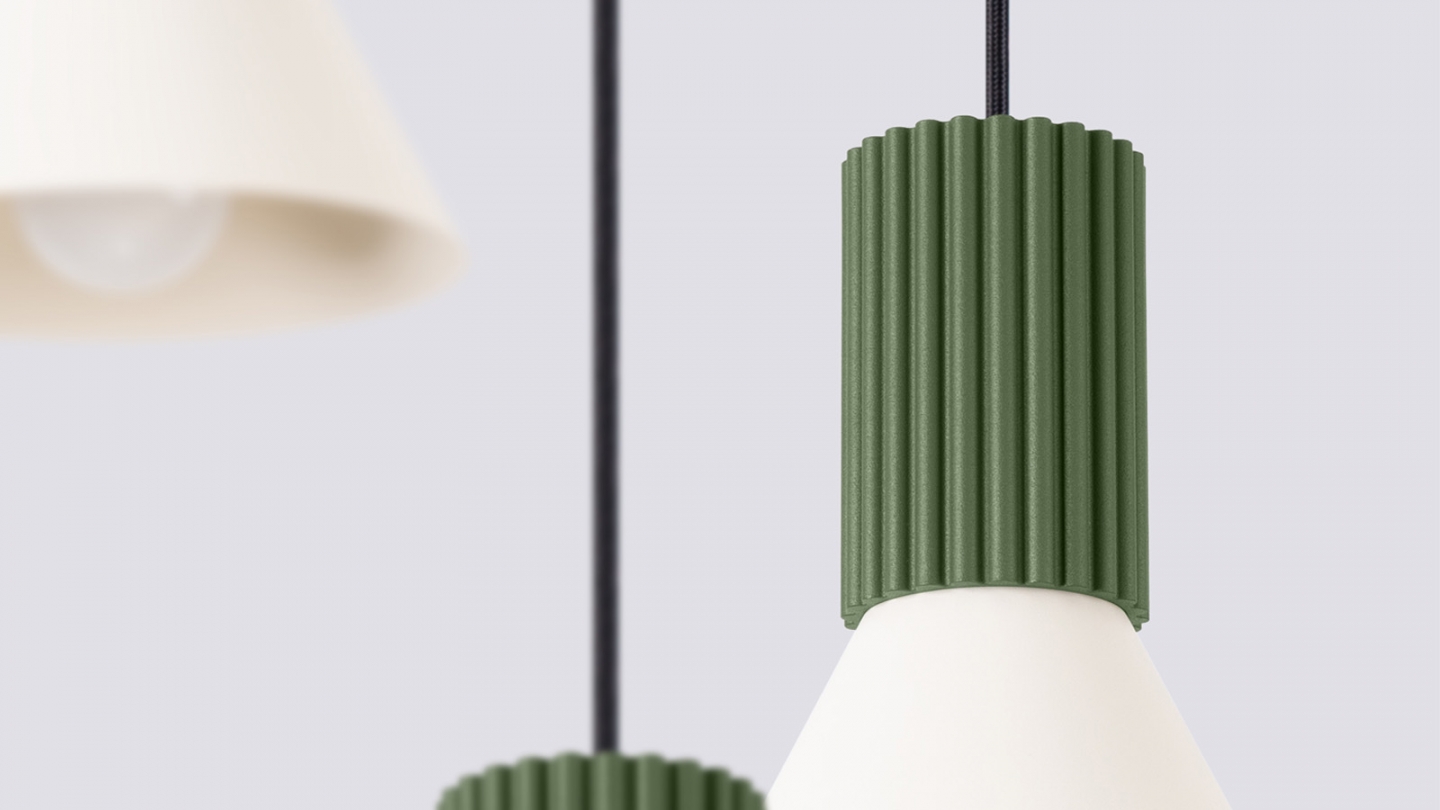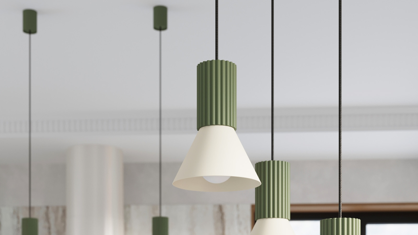 Suspension cannelée 3 lumières beige / vert olive - Estria