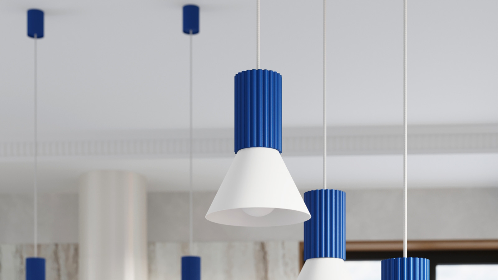 En stockSuspension cannelée 3 lumières blanc / bleu - Estria Le luminaire suspendu ESTRIA incarne la modernité dans une version minimaliste.Son design cannelé unique apporte du caractère tout en diffusant la lumière de façon homogène, créant une atmosphère douce et chaleureuse. Versions disponiblesLa suspension ESTRIA est proposée en deux versions (1 et 3...