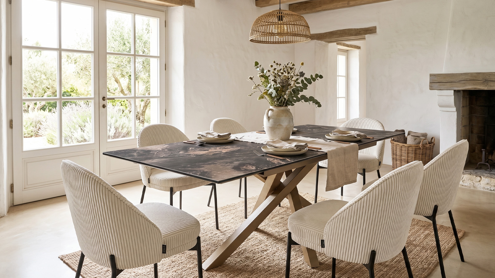 La céramique est l'un des matériaux les plus exigeants utilisés en ameublement. Contrairement au verre ou au bois, elle résiste naturellement aux rayures des couverts, à la chaleur des plats sortis du four et aux taches du quotidien. Un simple coup d'éponge suffit pour retrouver sa surface immaculée, sans produit d'entretien spécifique.